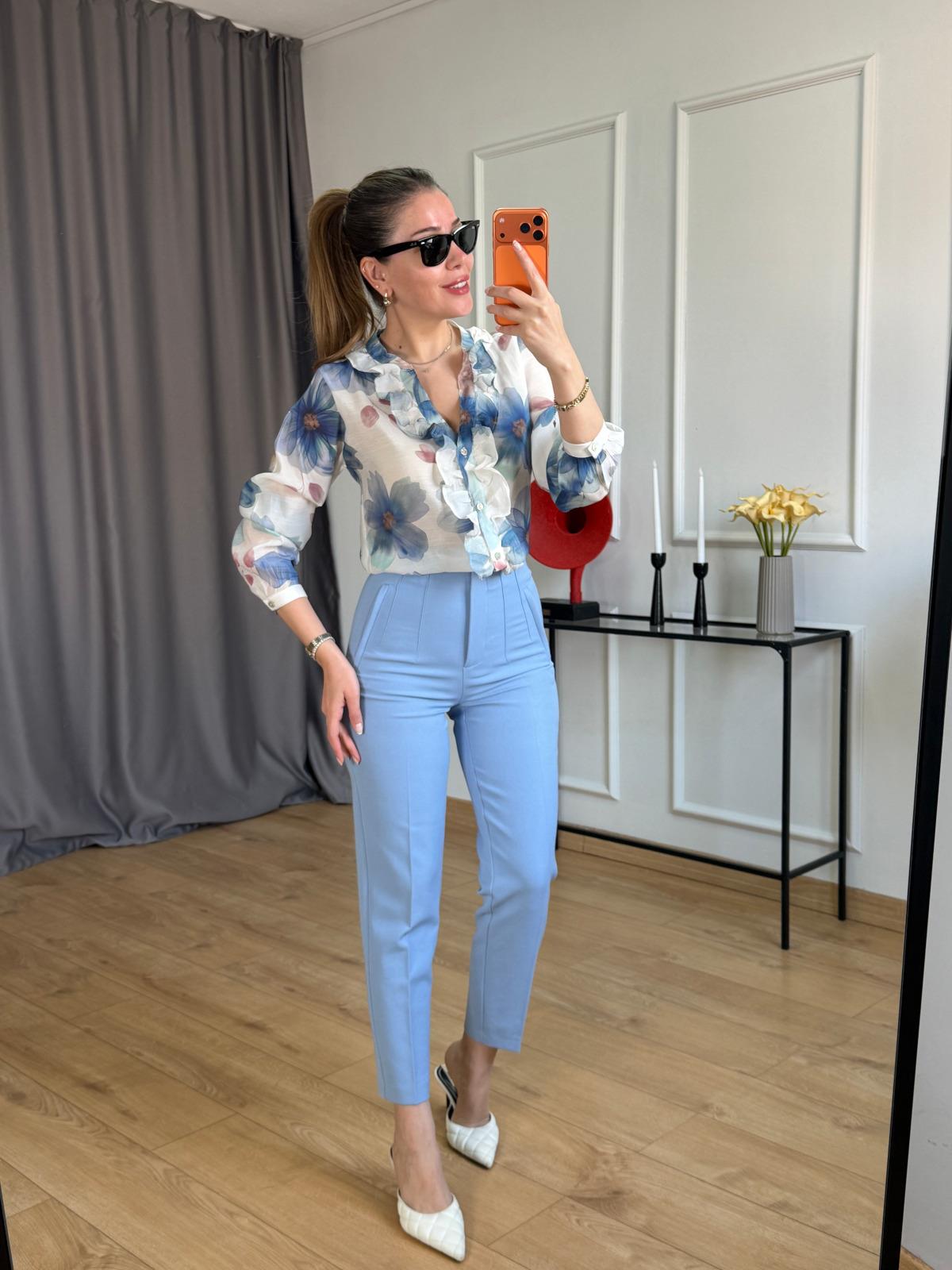 Açık Mavi Önü Flotalı Pantolon