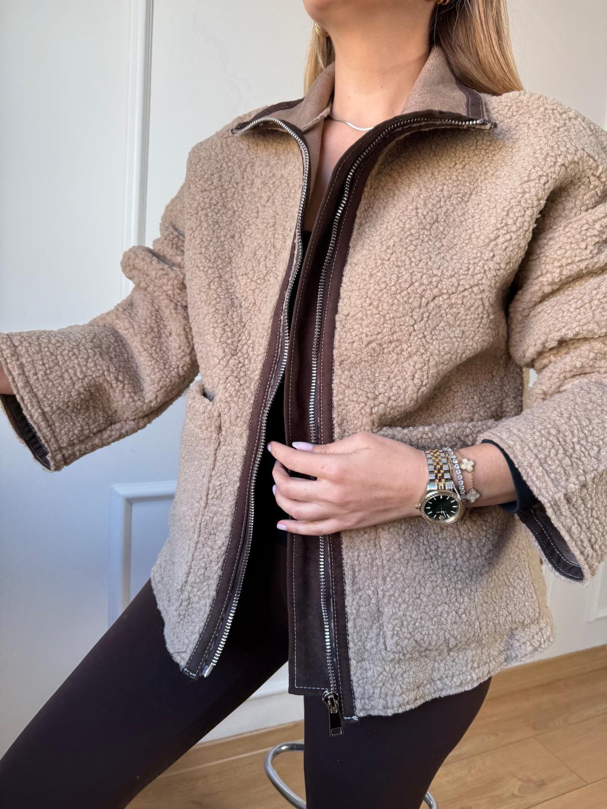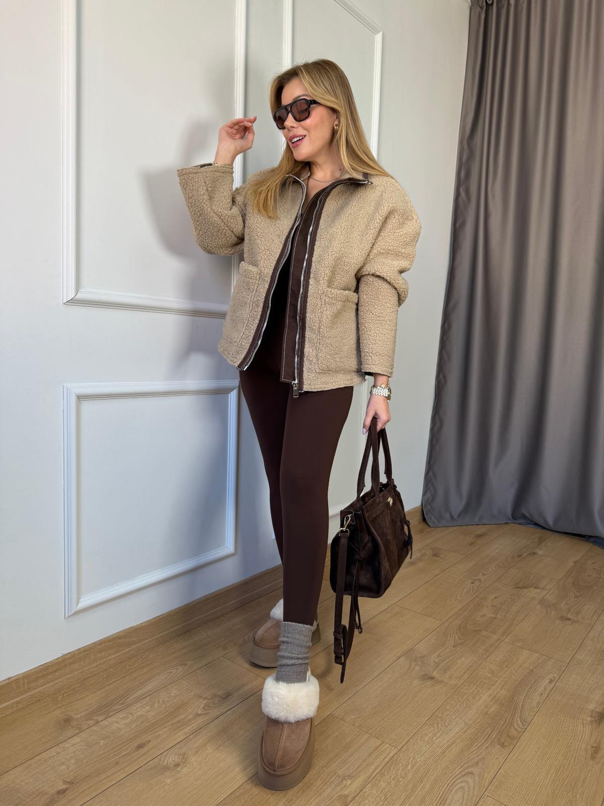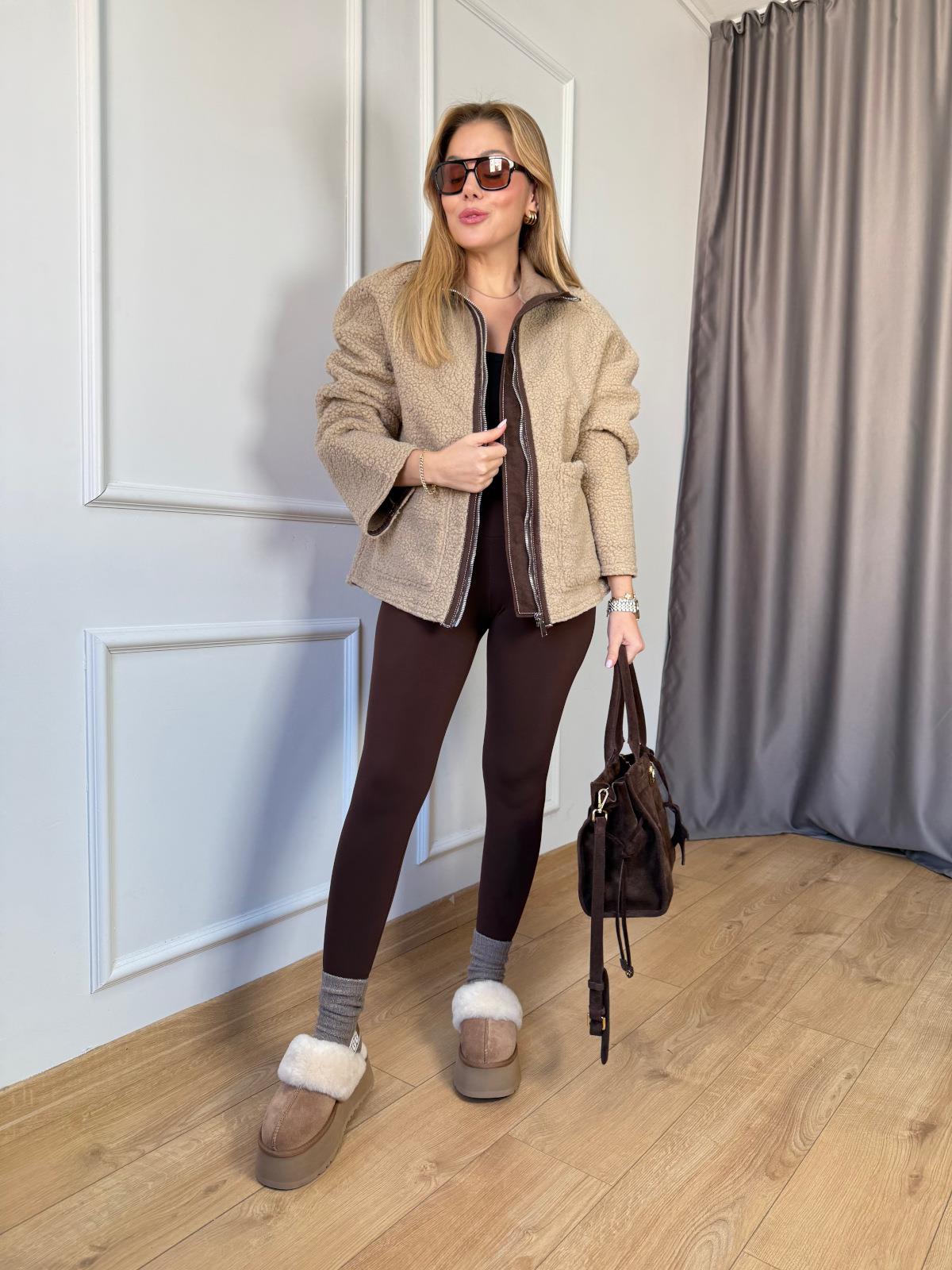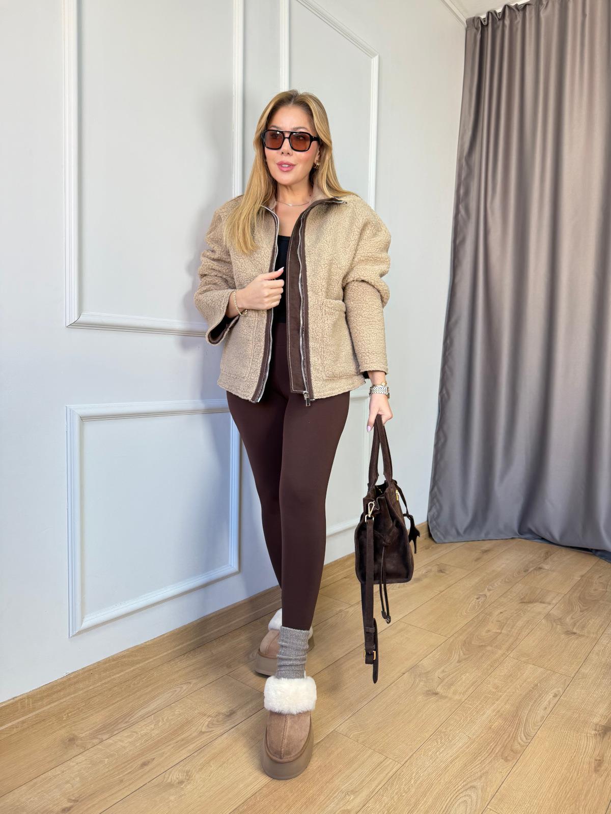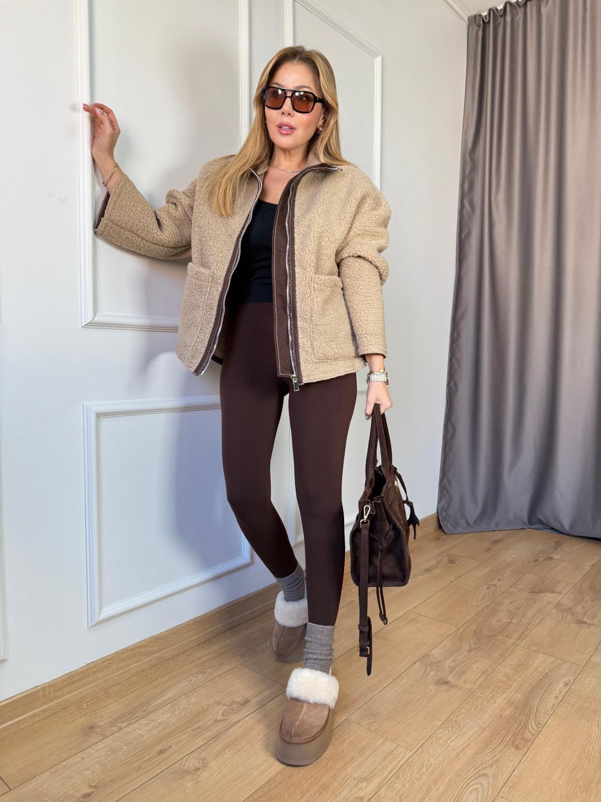 Vizon Biyeli Peluş Mont Kahve Yeni Tayt