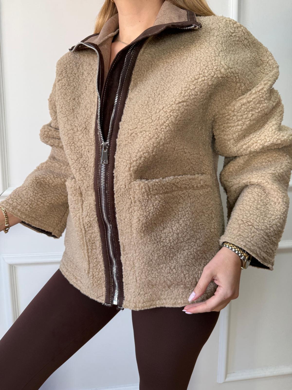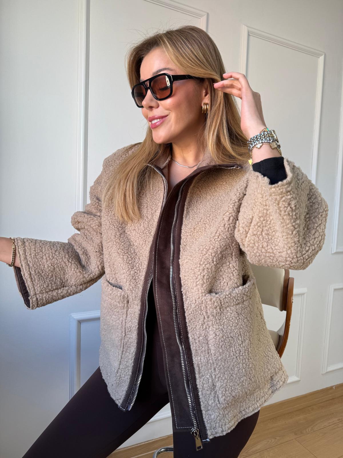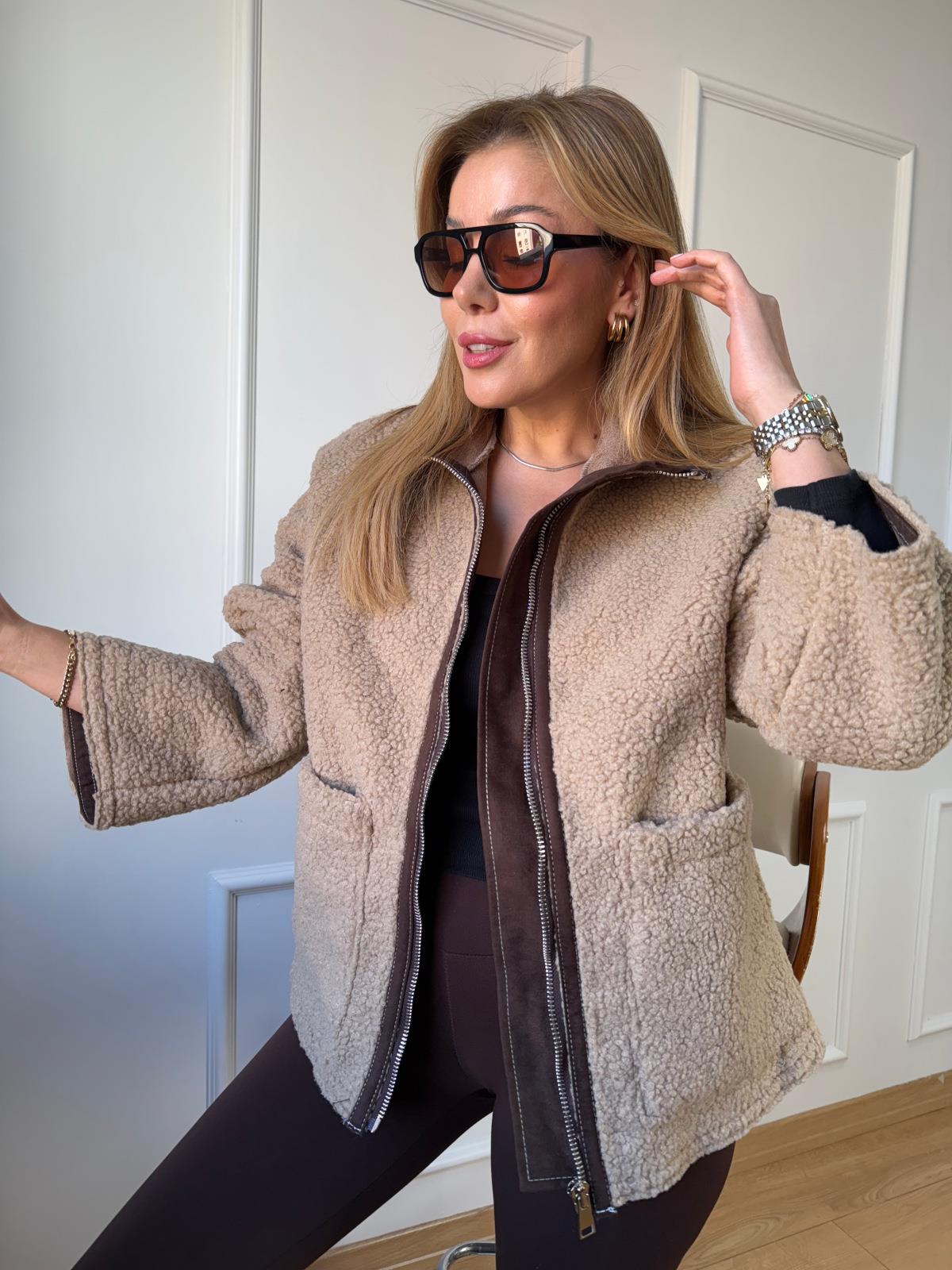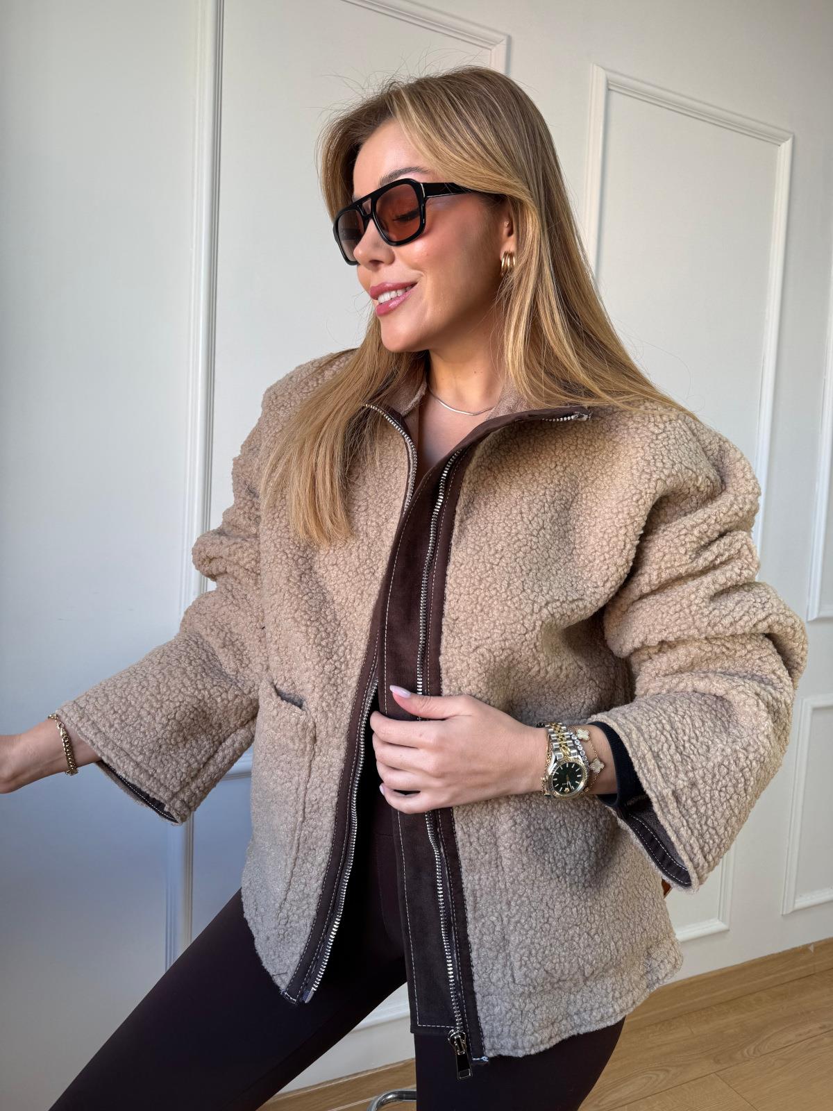 Bej Biyeli Peluş Mont (SZ0716312)