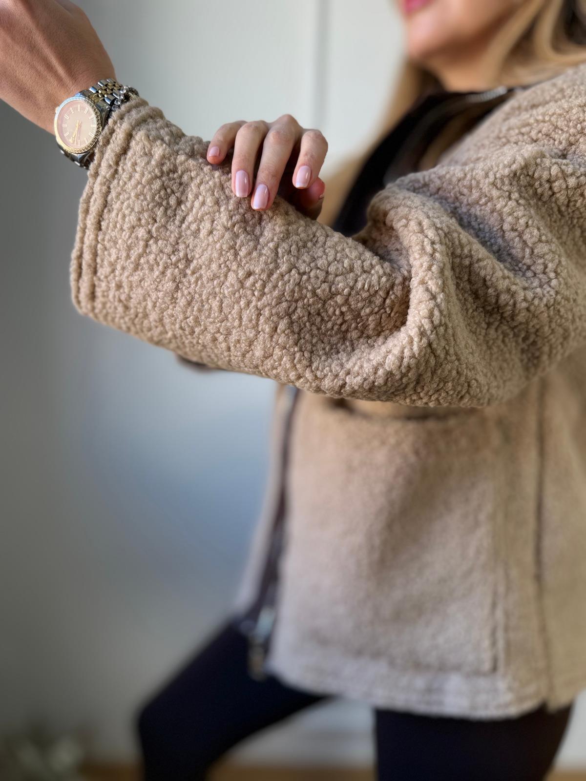 Bej Biyeli Peluş Mont