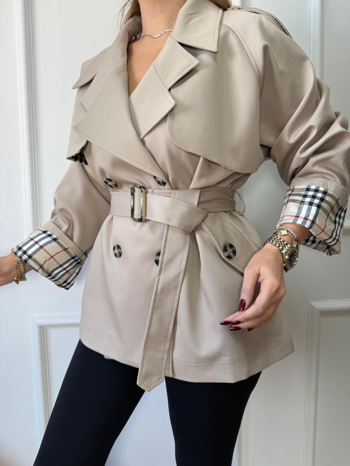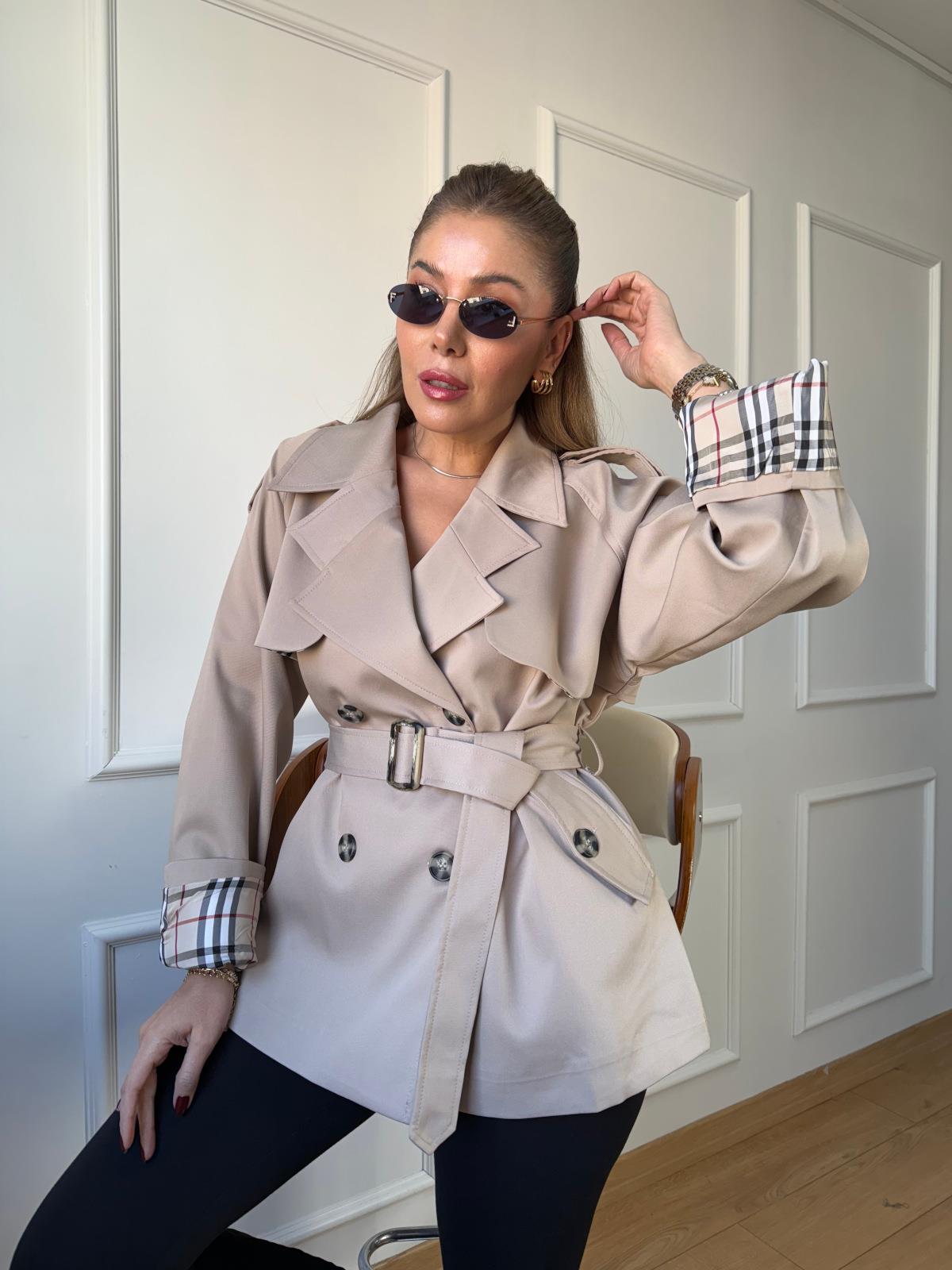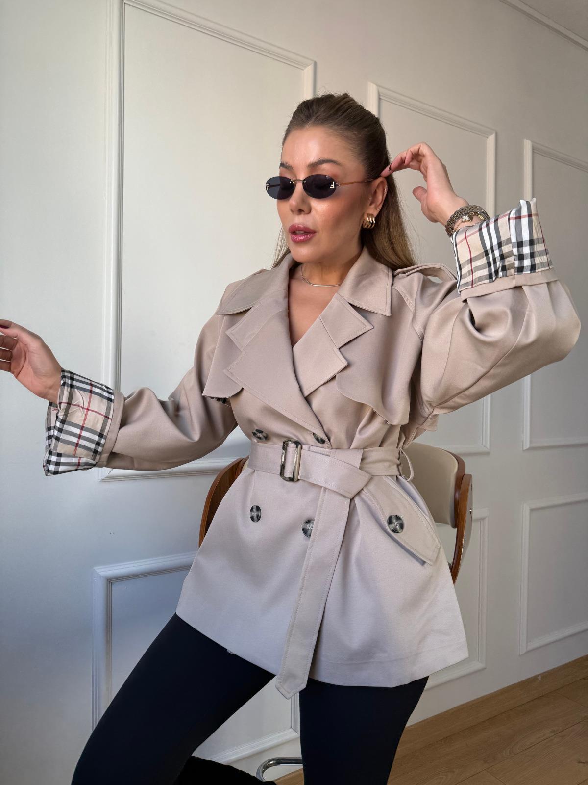 Bej İçi Ekoseli Kısa Trençkot (SZ0716257)