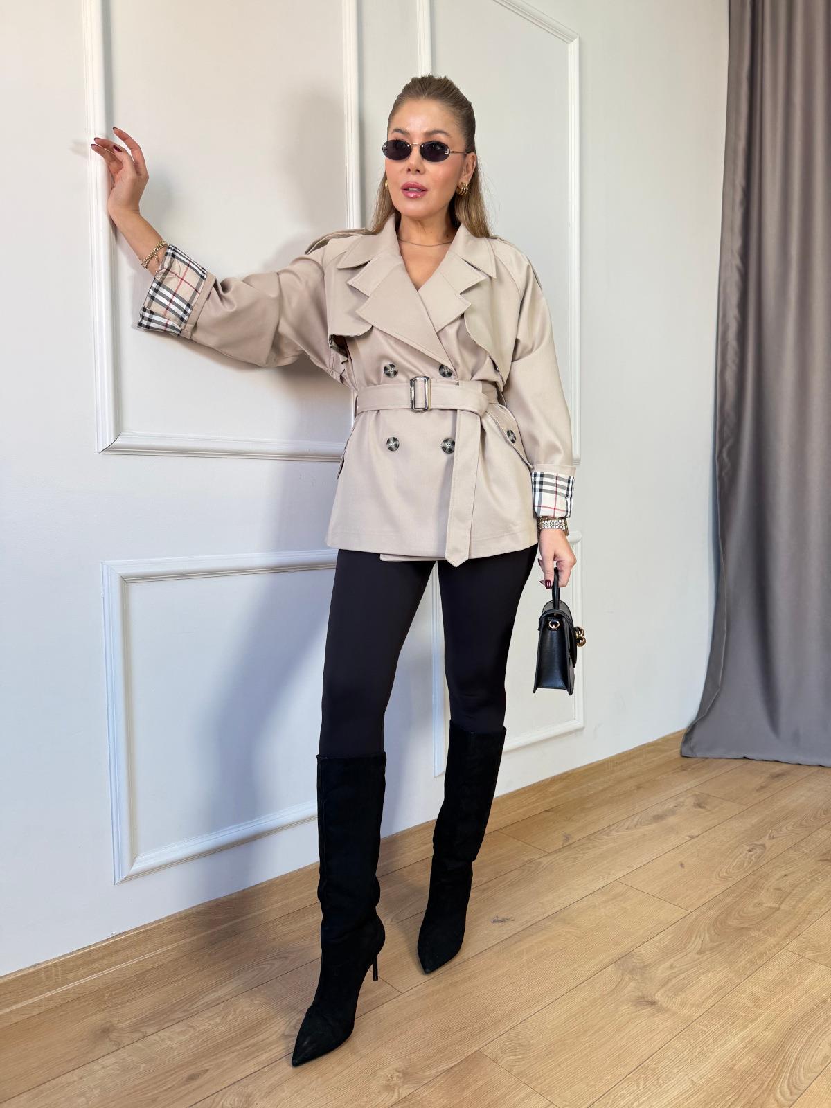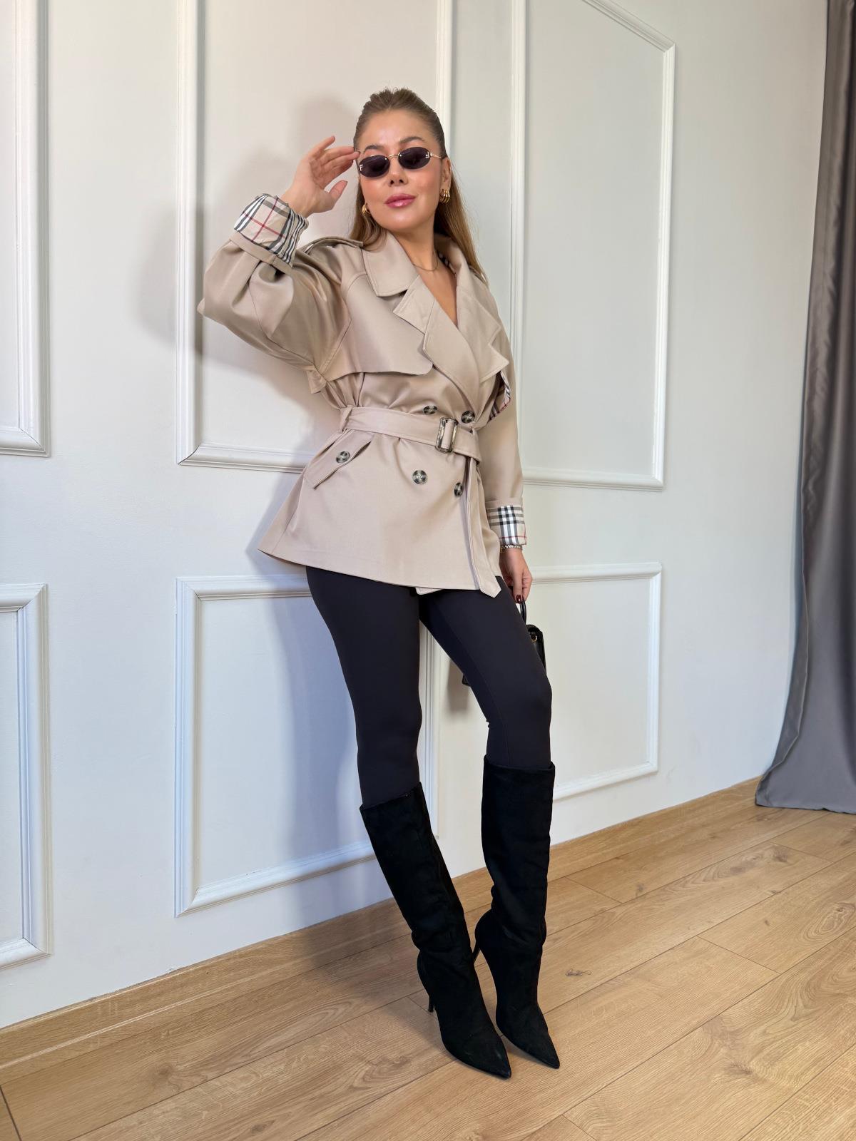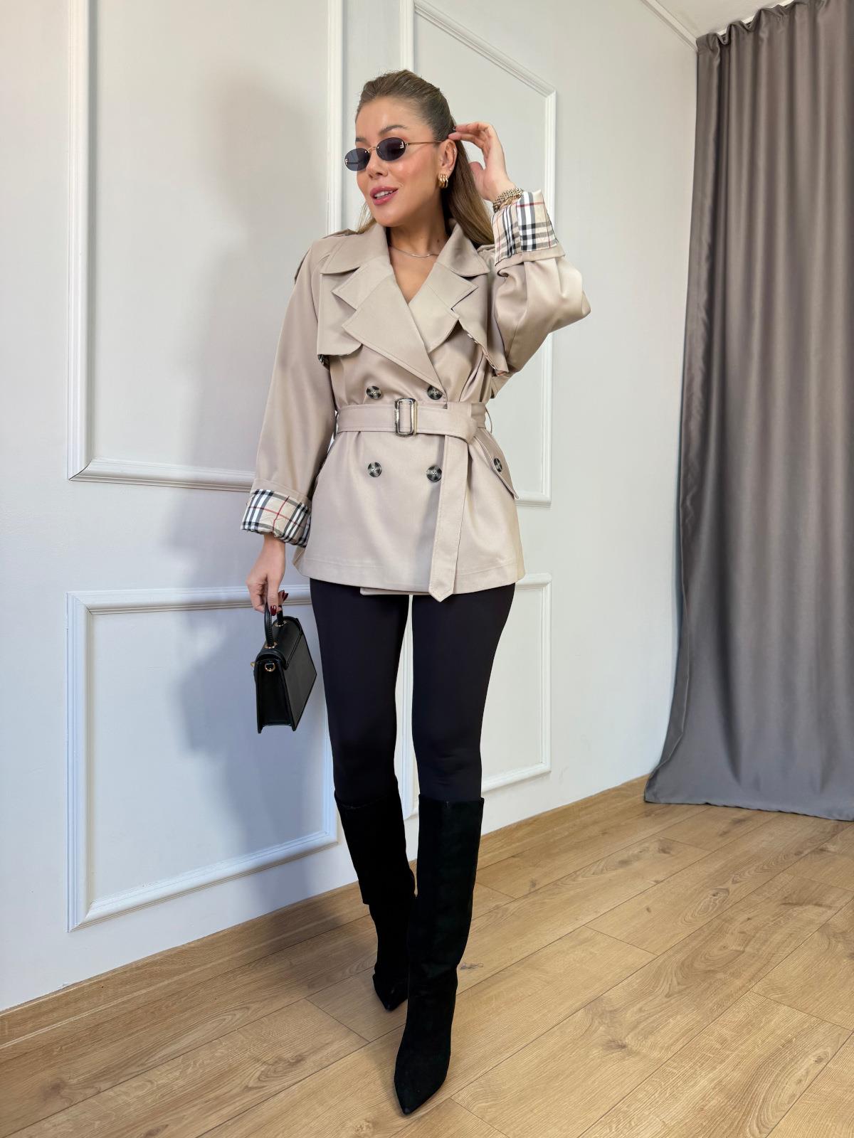 Bej İçi Ekoseli Kısa Trençkot (SZ0716257)