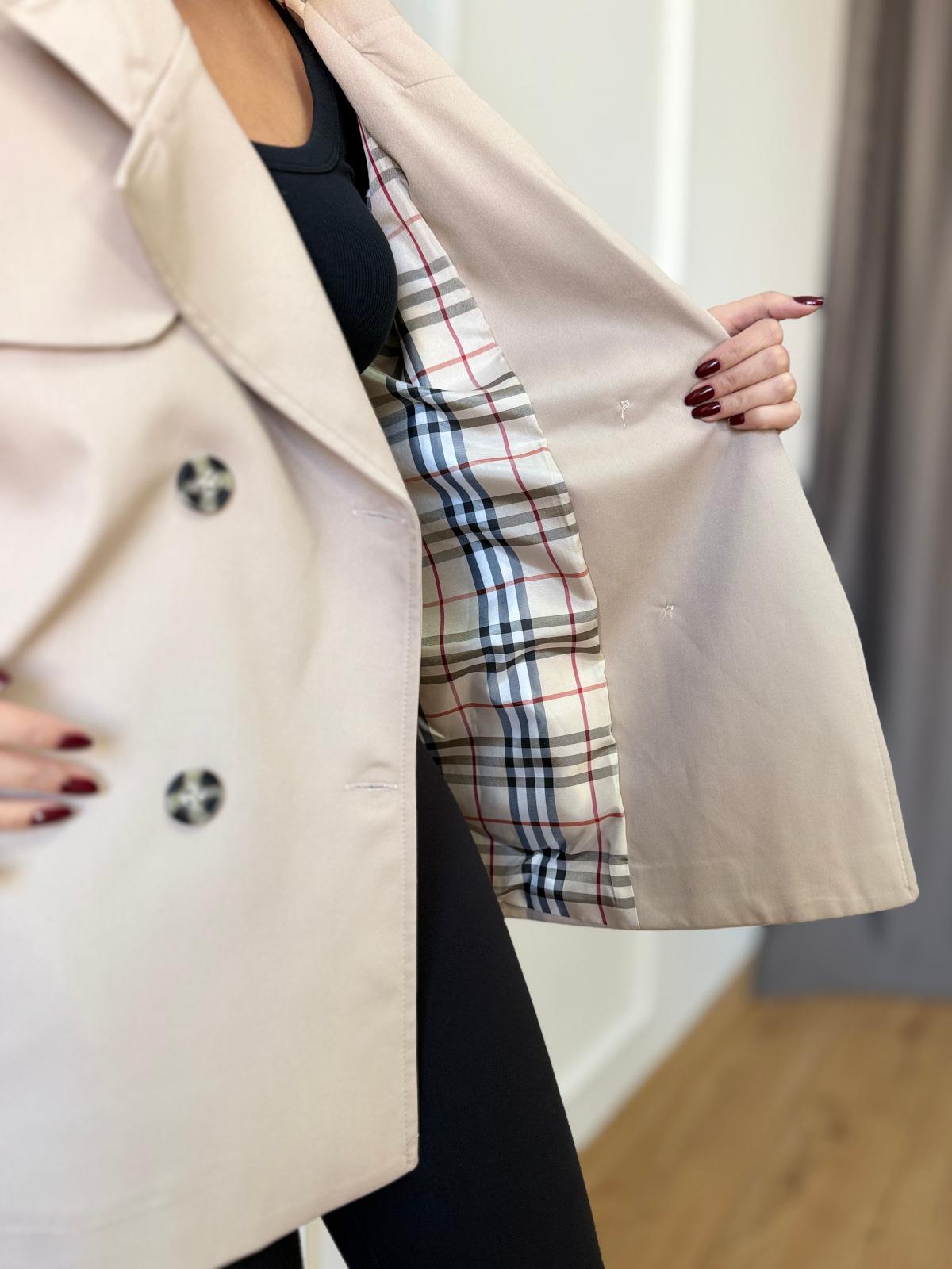 Bej İçi Ekoseli Kısa Trençkot