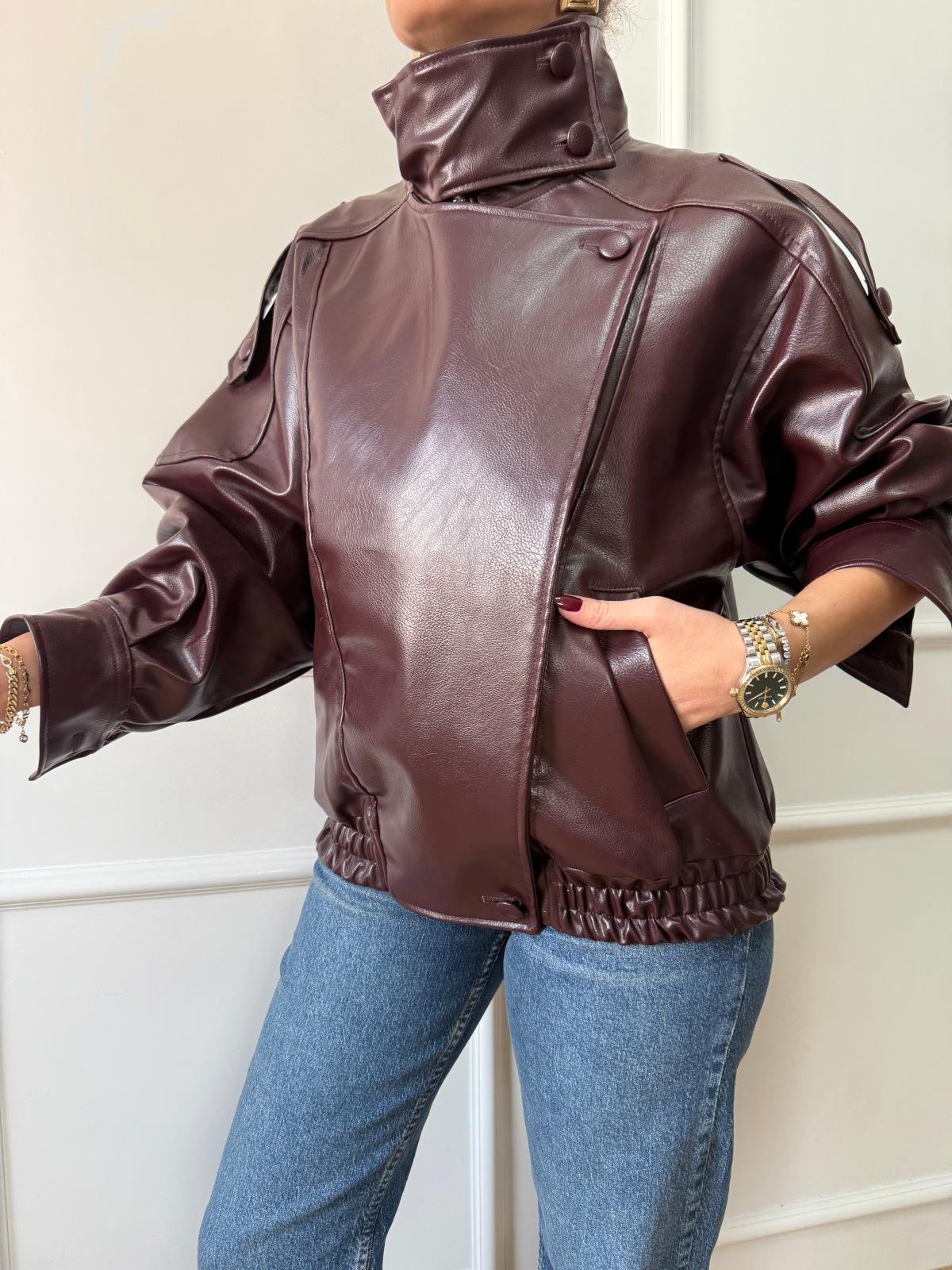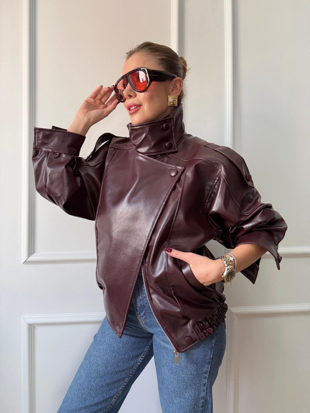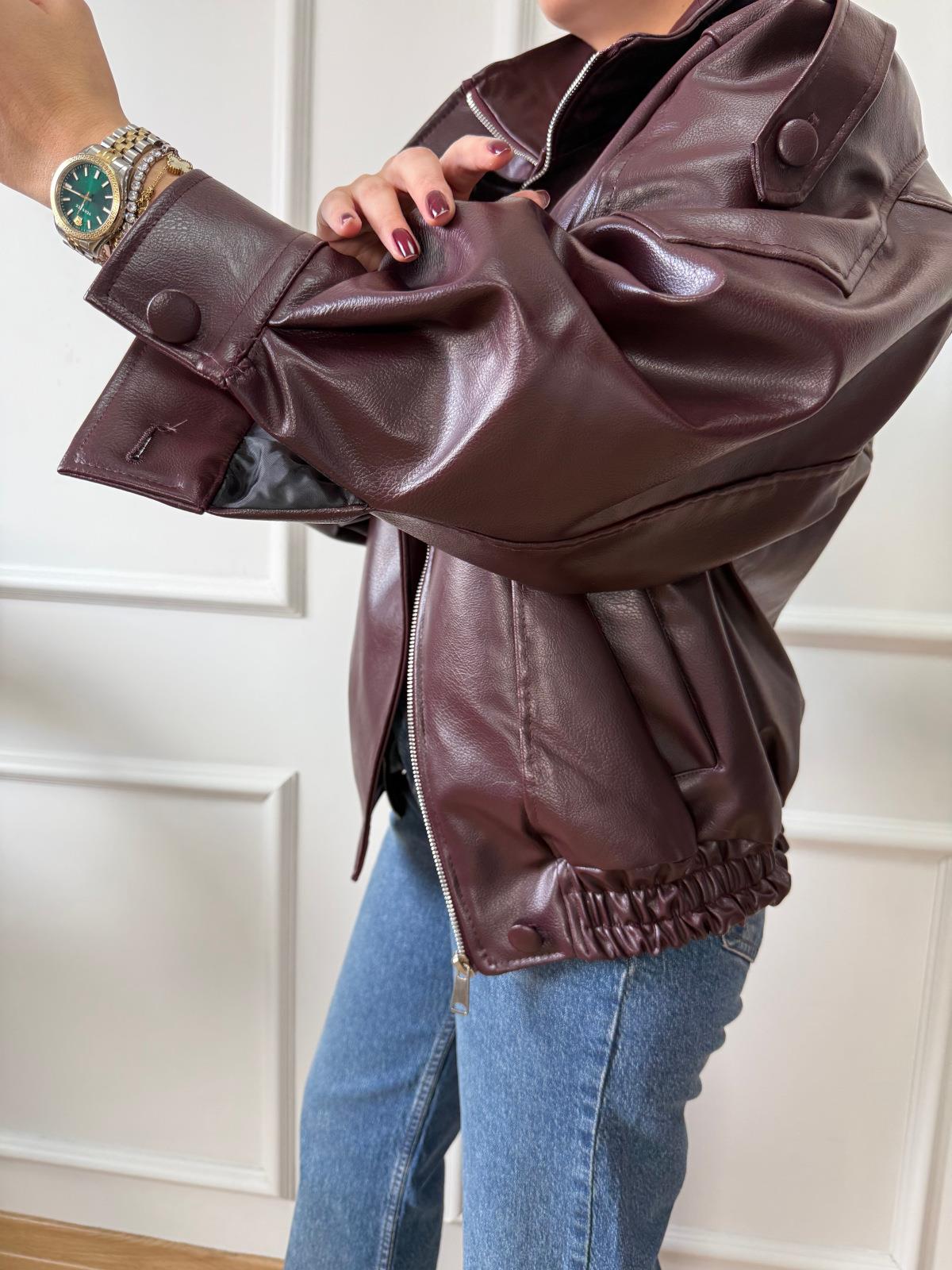 Bordo Deri Bomber Ceket