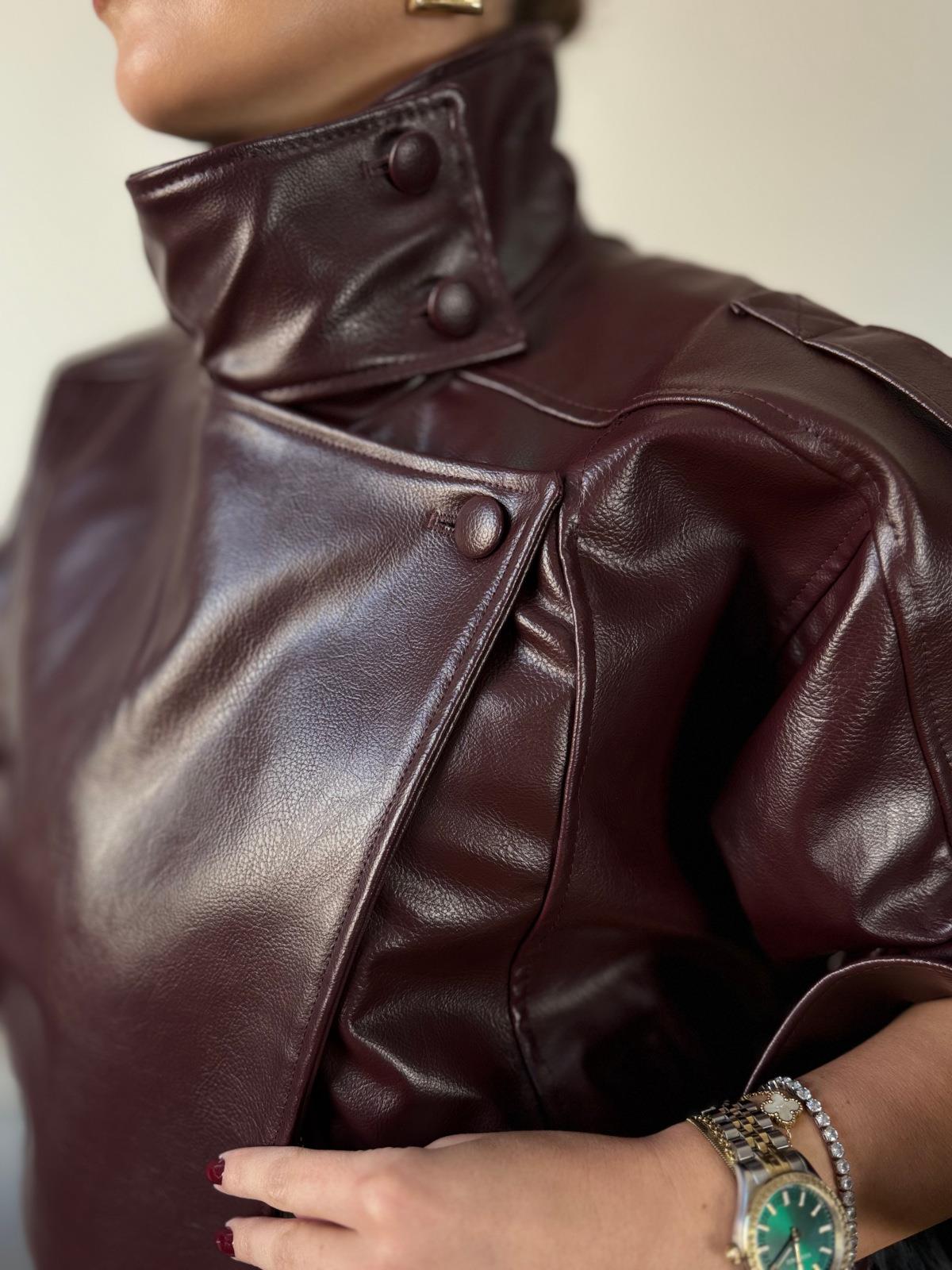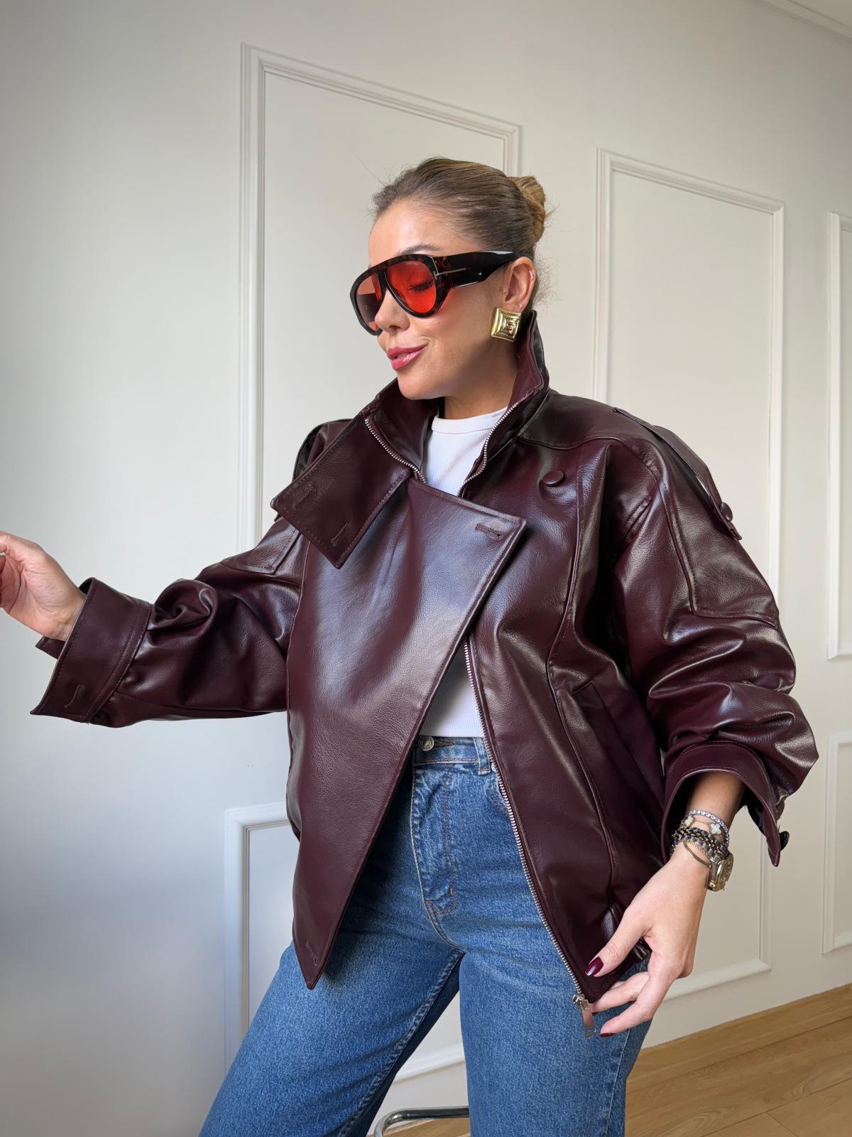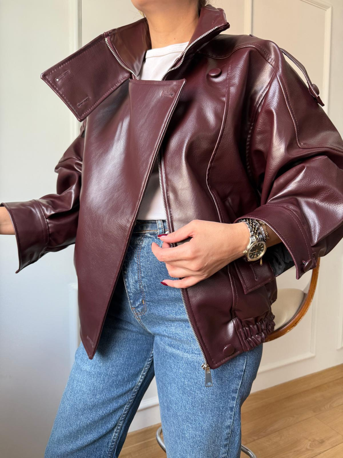 Bordo Deri Bomber Ceket