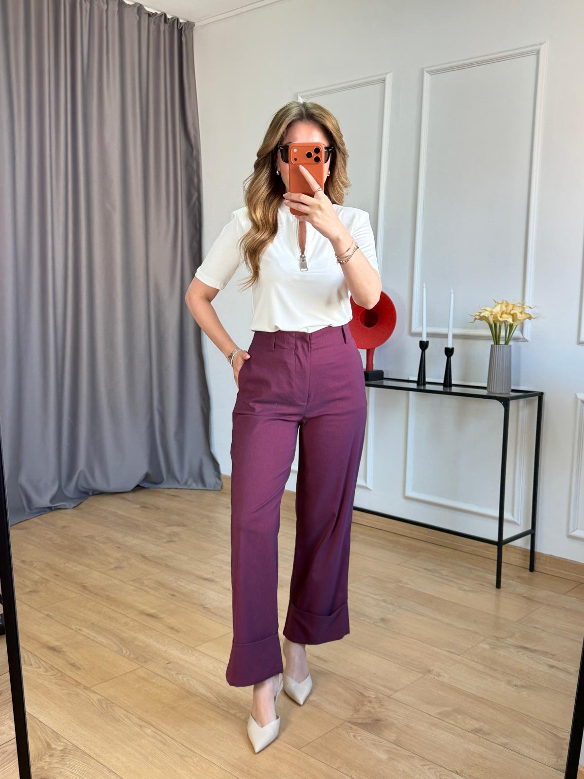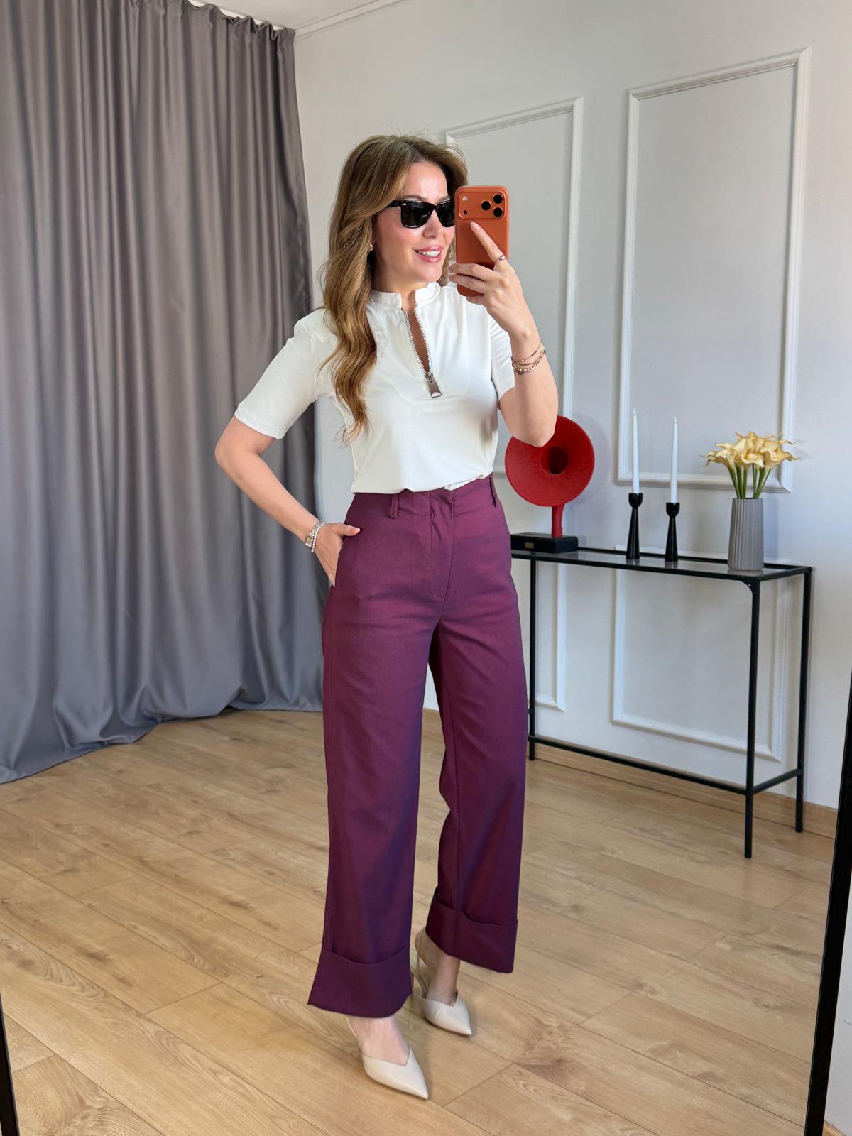 Siyah Duble Paça Pantolon Taş Duble Paça Pantolon Lacivert Duble Paça Pantolon Ekru Yaka Fermuarlı Vatkalı Tshirt