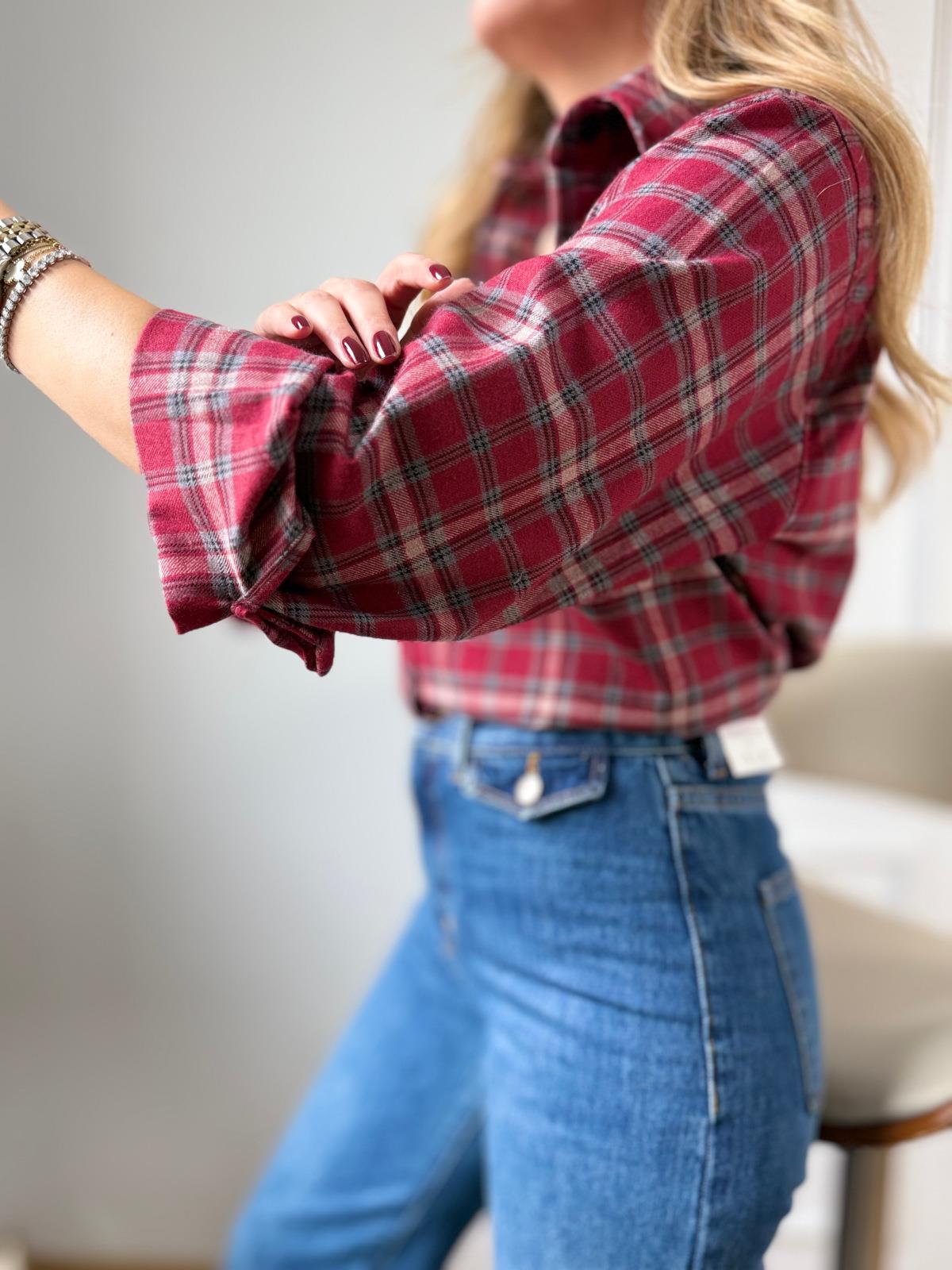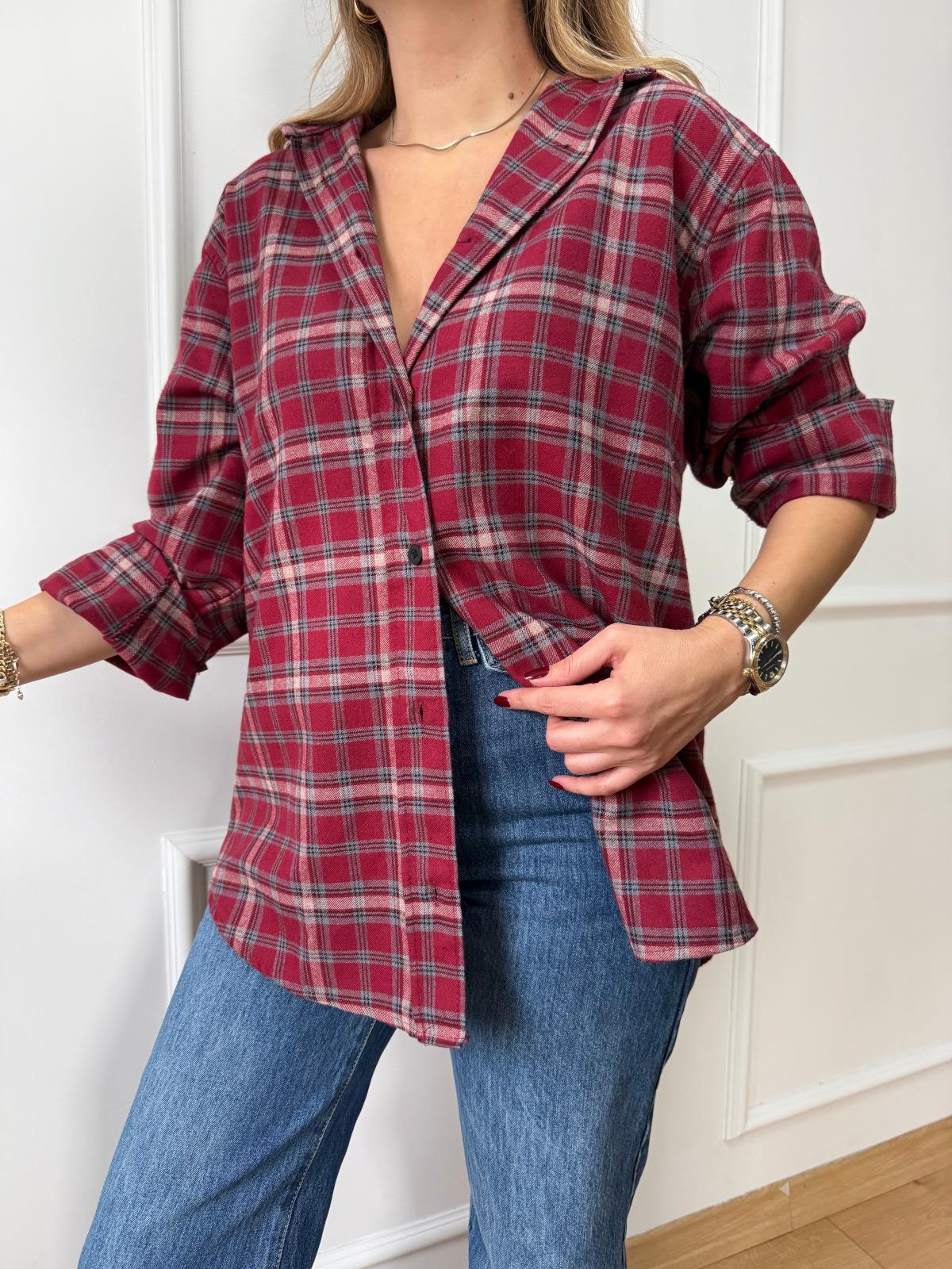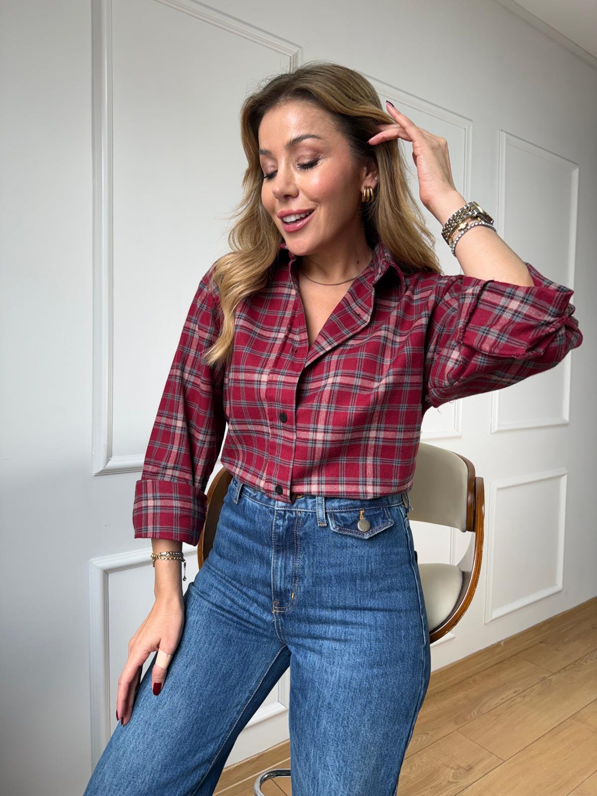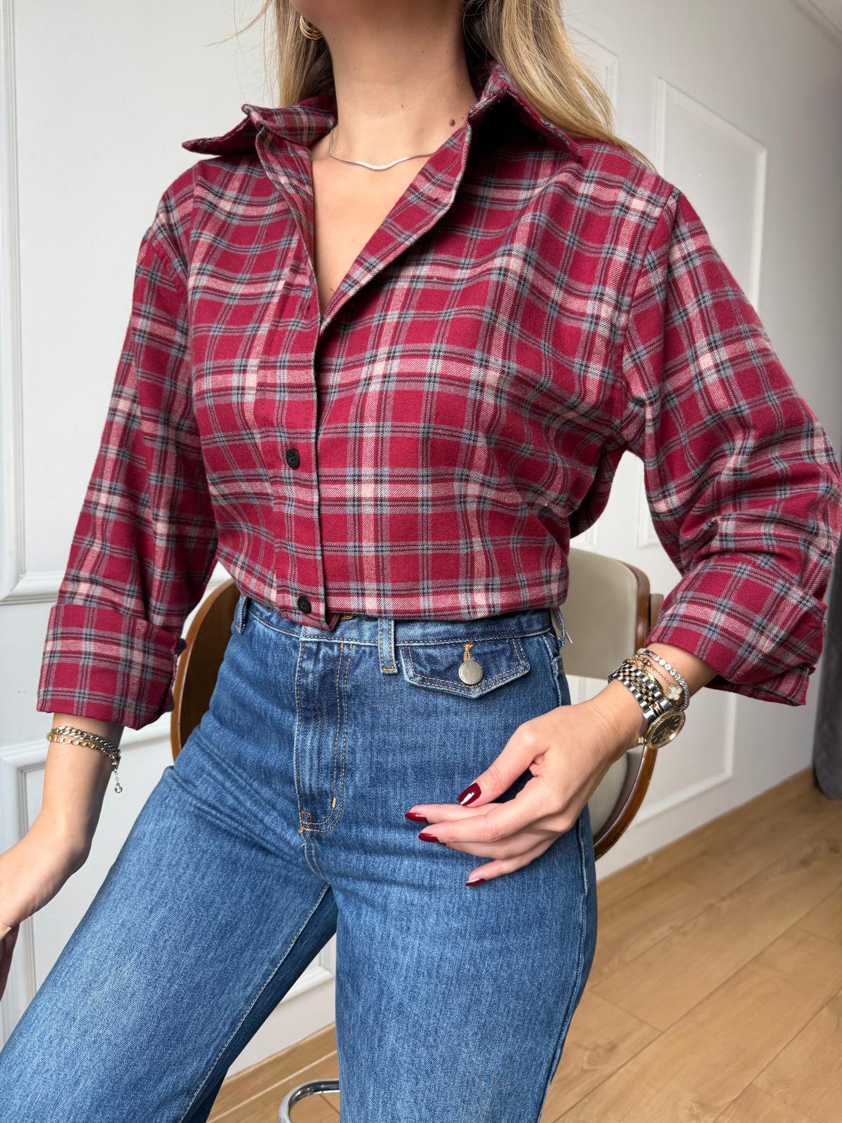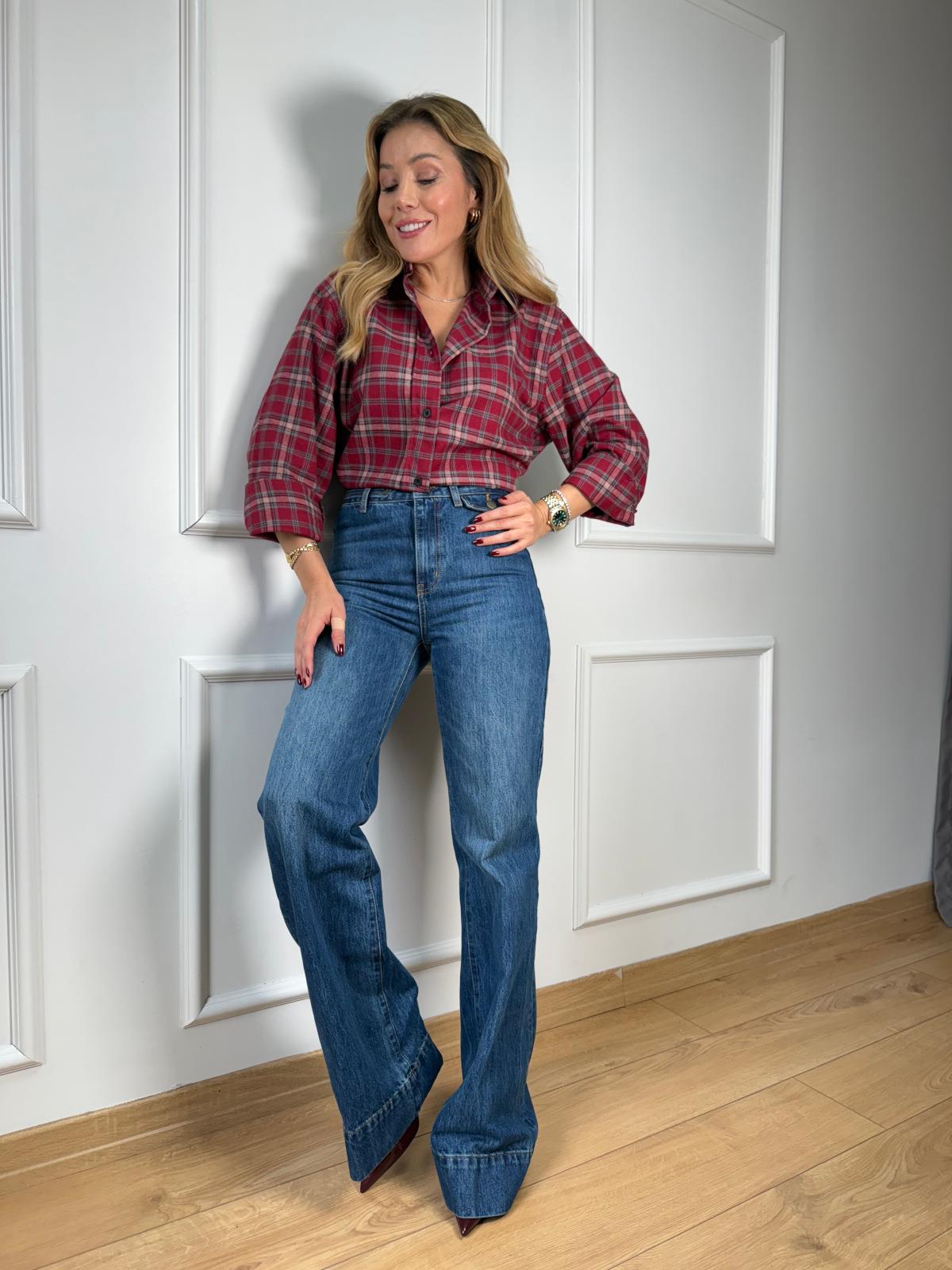 Bej Ekose Gömlek  Mavi Cep Kapaklı Jean