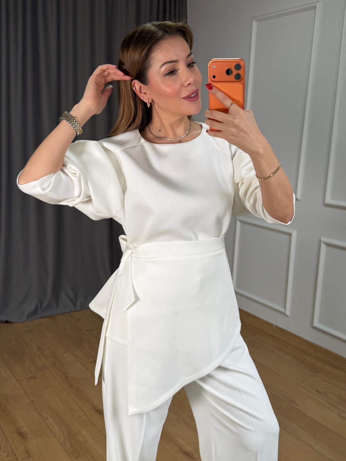 Ekru Bağlama Detay Scuba Bluz