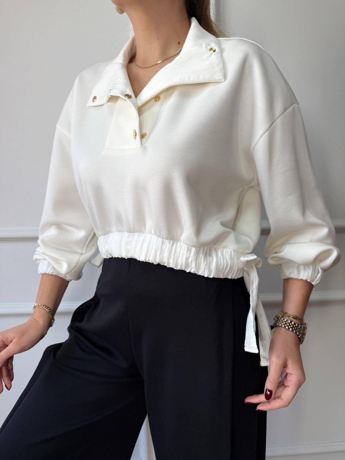Ekru Bel Bağlama Detaylı Sweatshirt (SZ0716505)