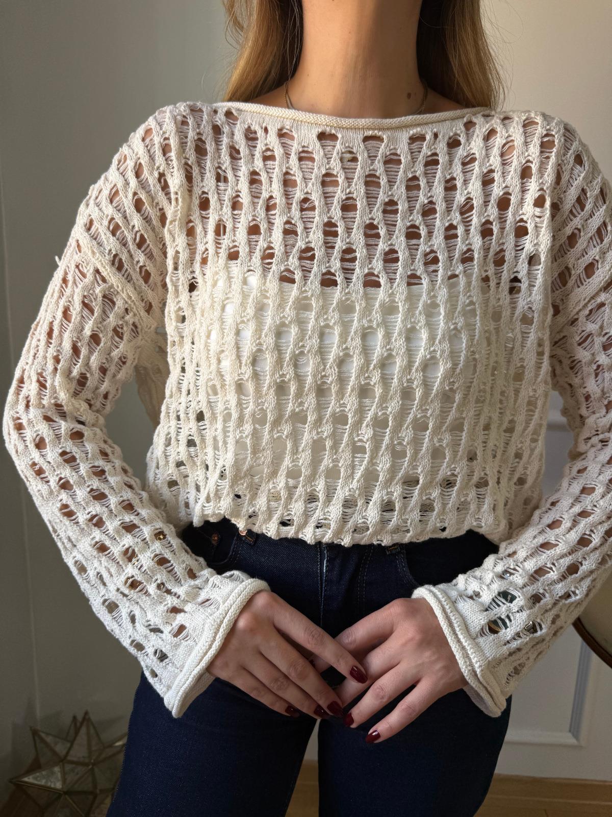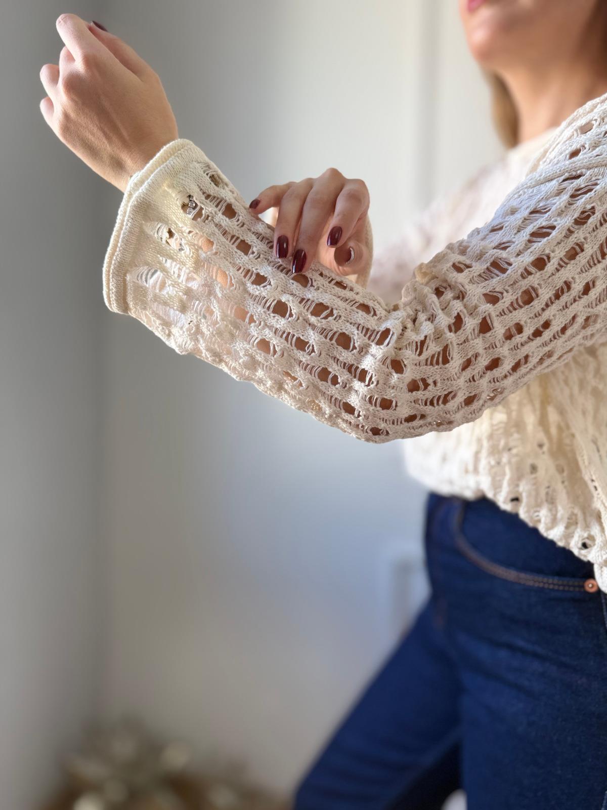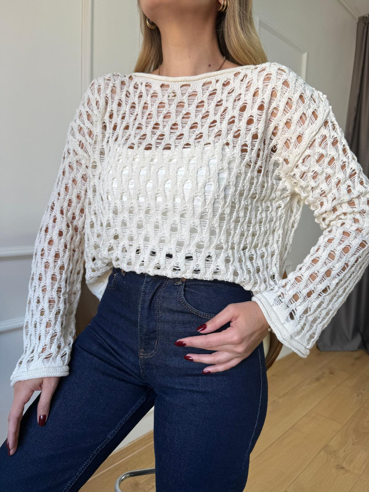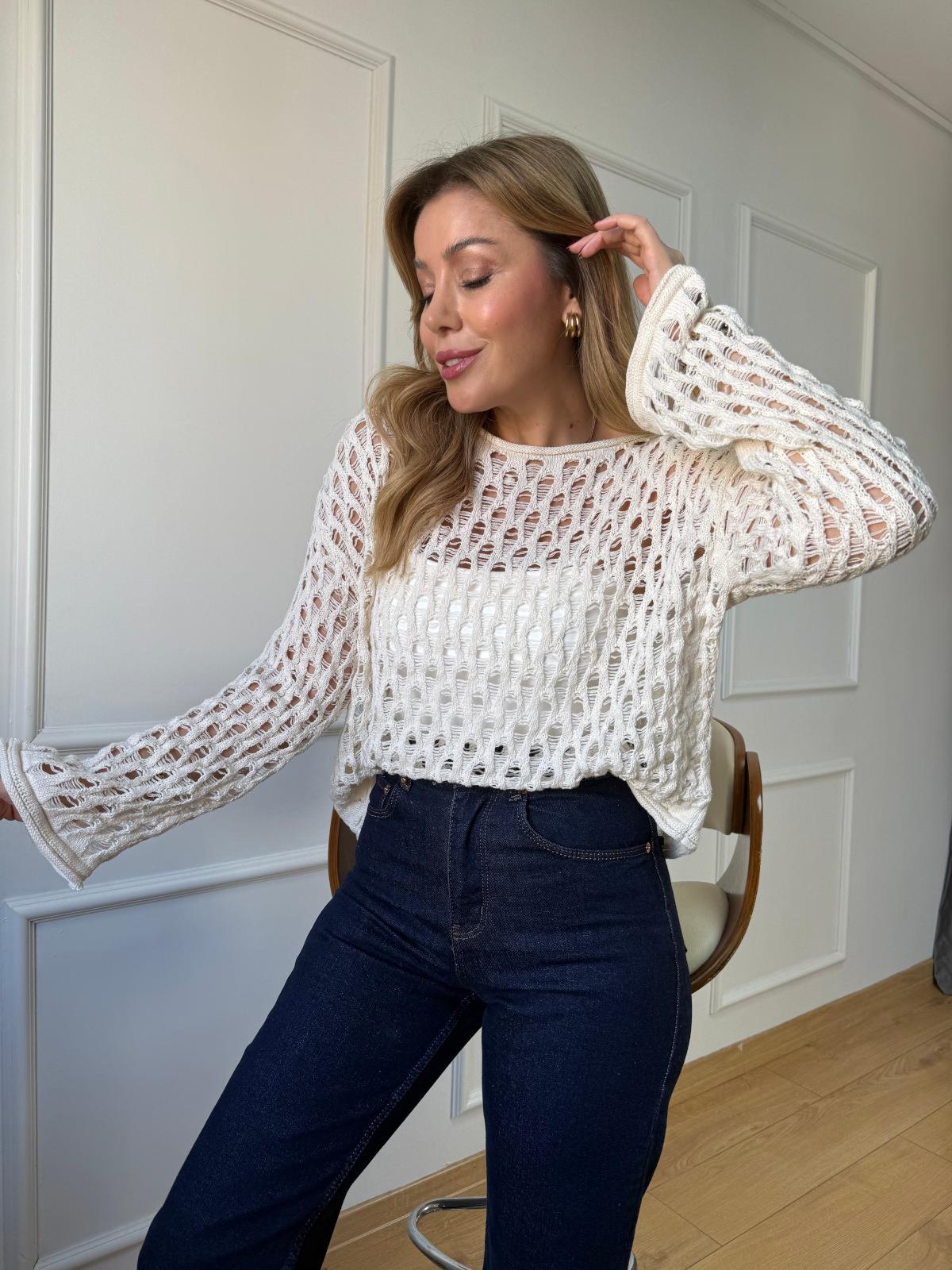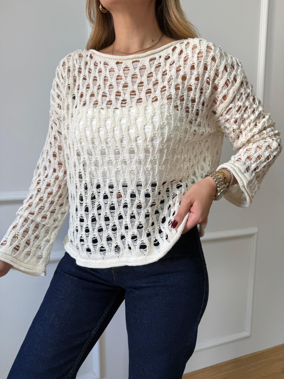 Ekru Delikli Bluz