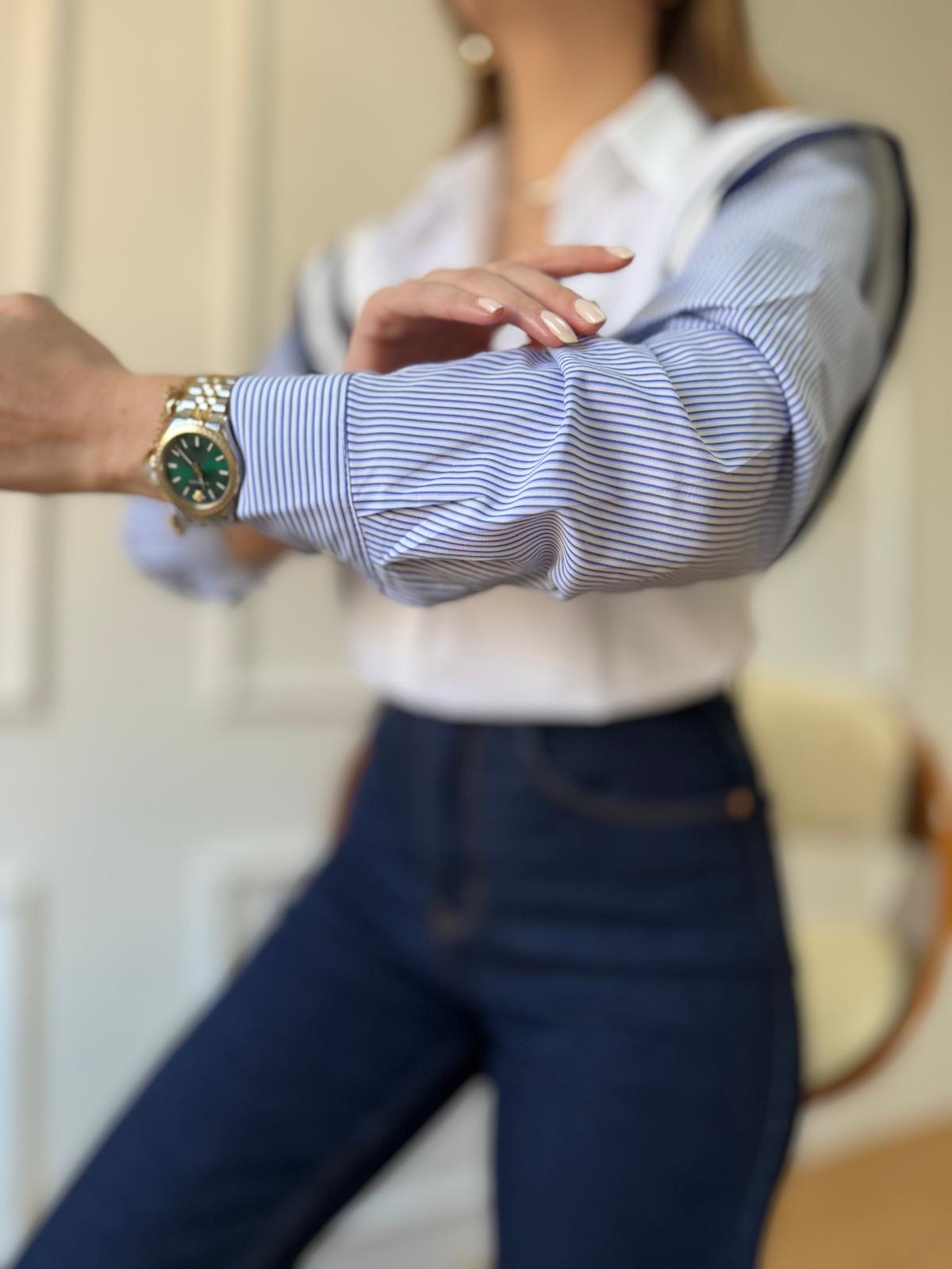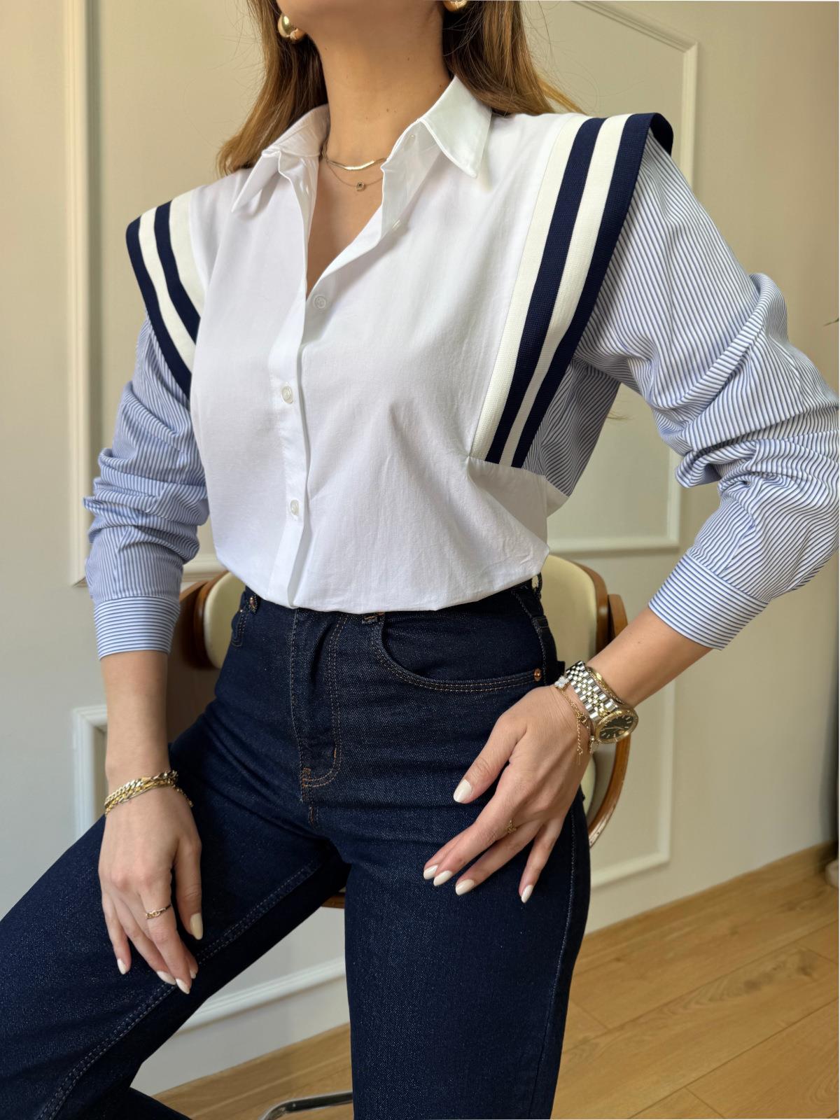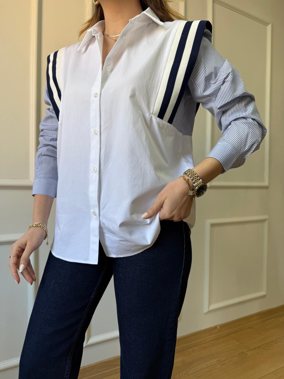 Ekru Omuz Şeritli Gömlek