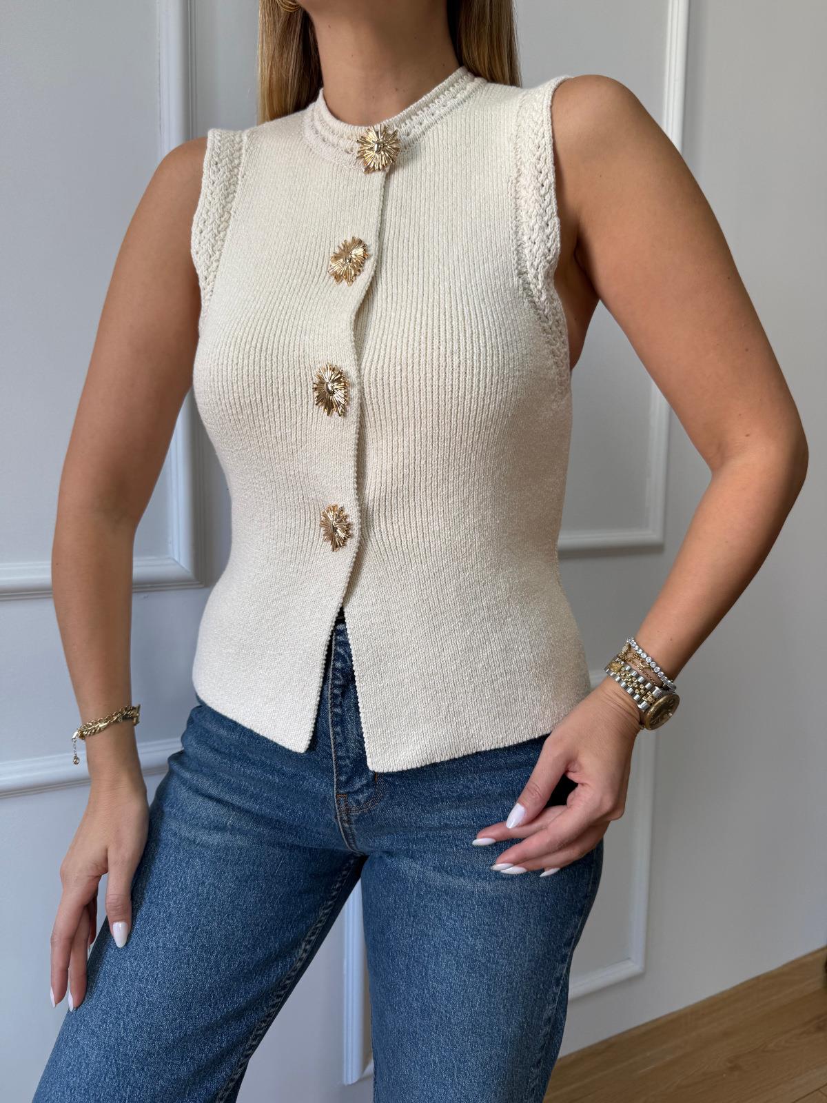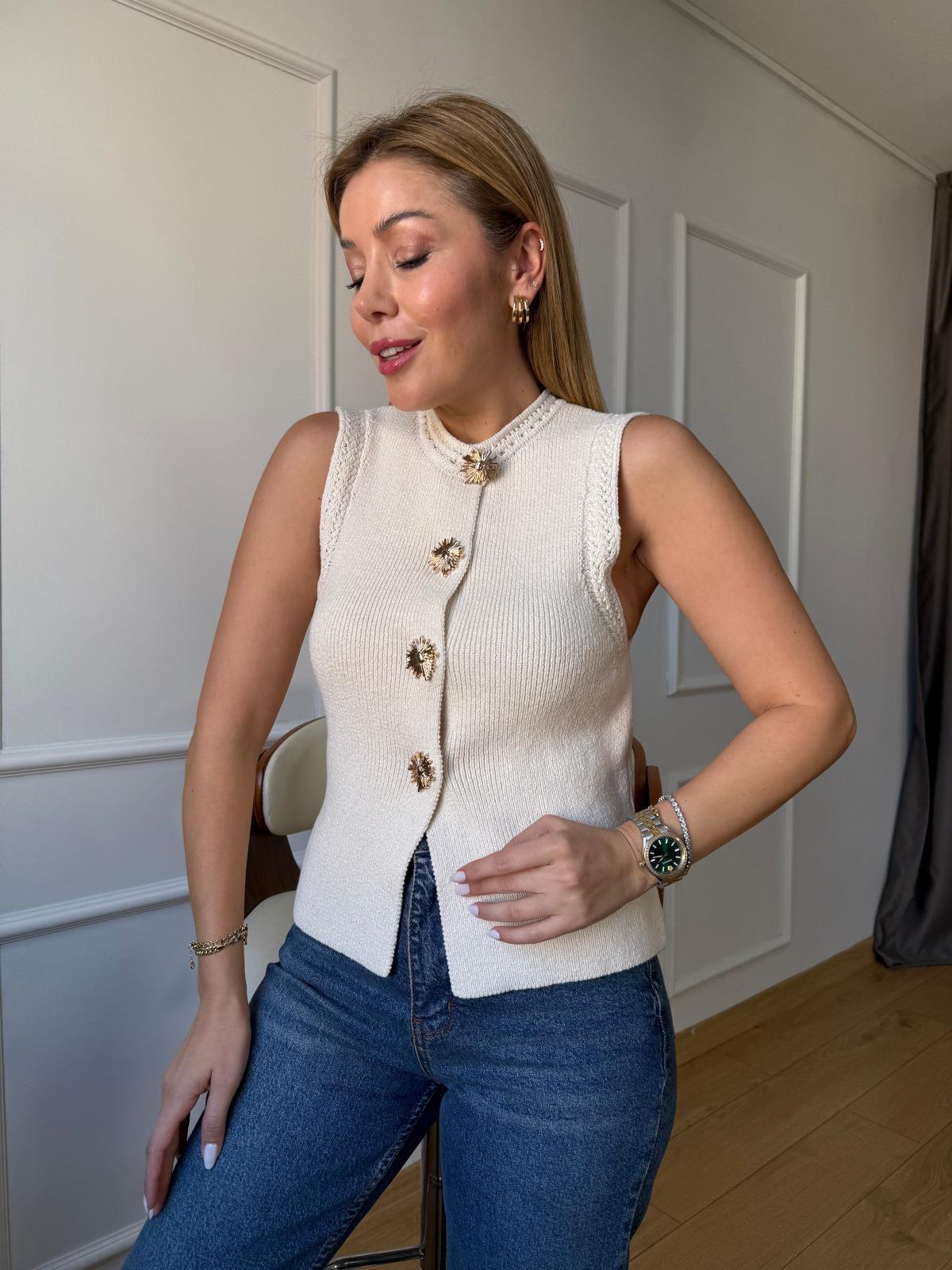 Gold Yıldız Düğme Detaylı Taş Yelek