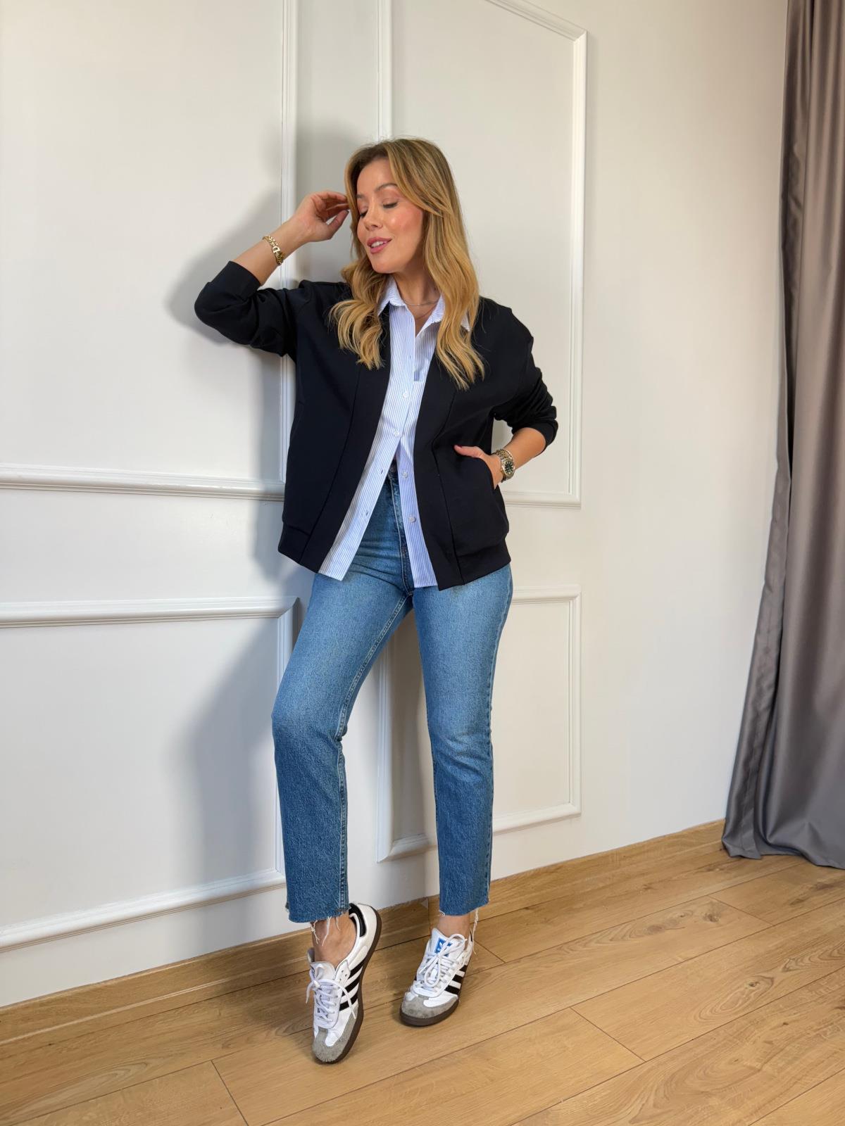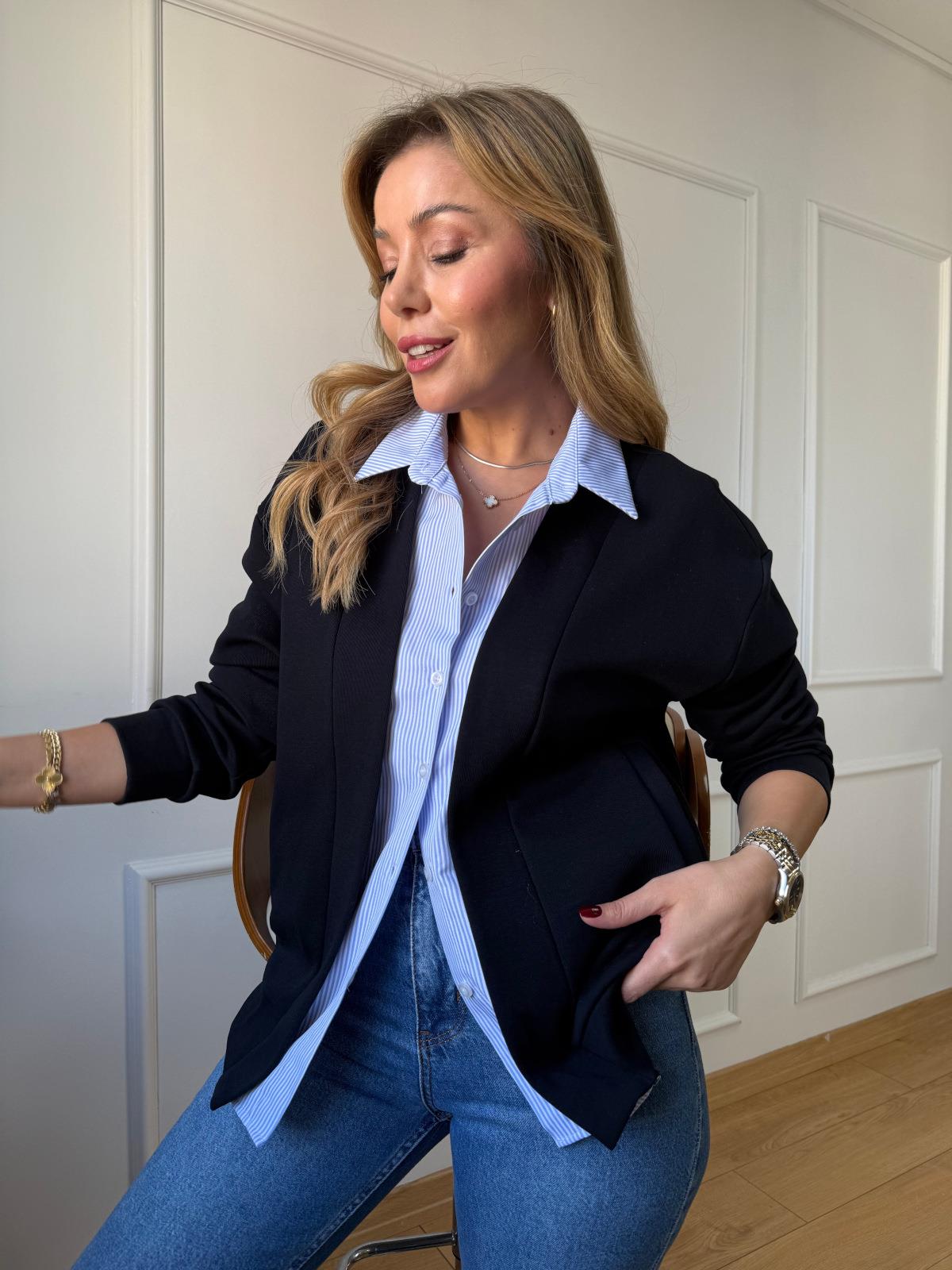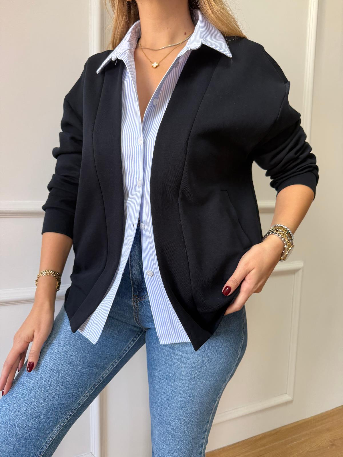 Gömlek Detaylı Lacivert Hırka