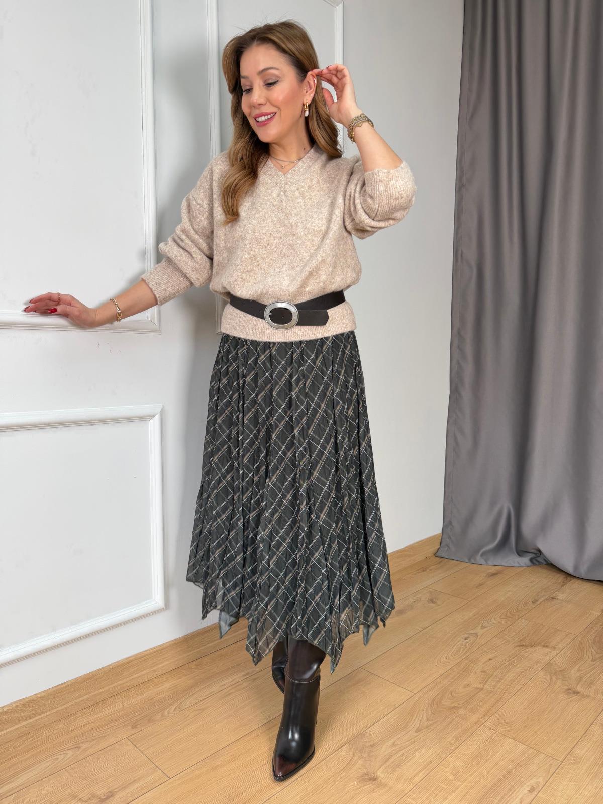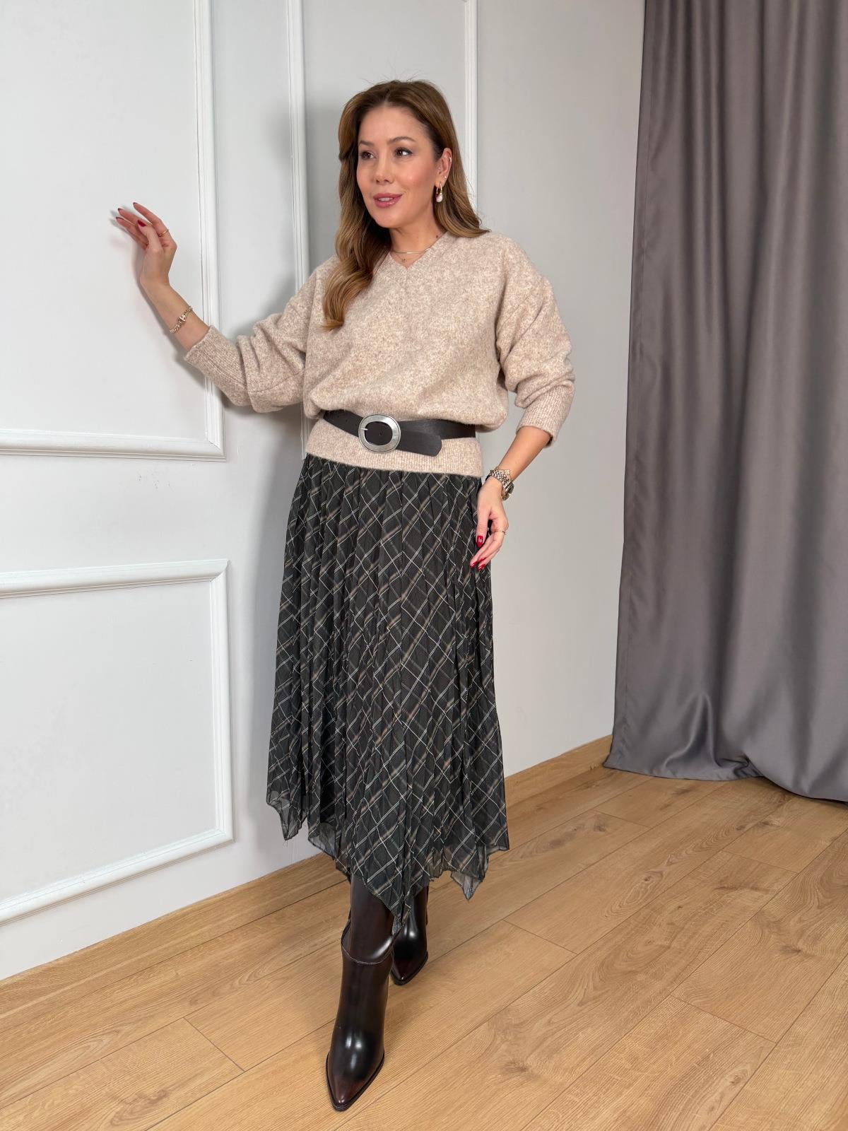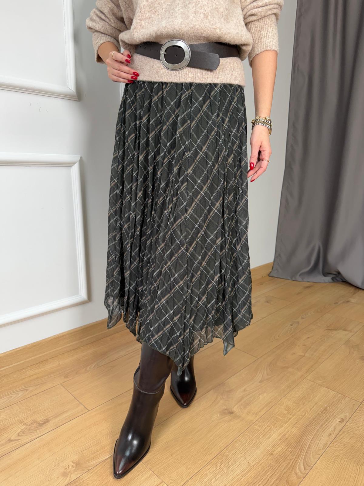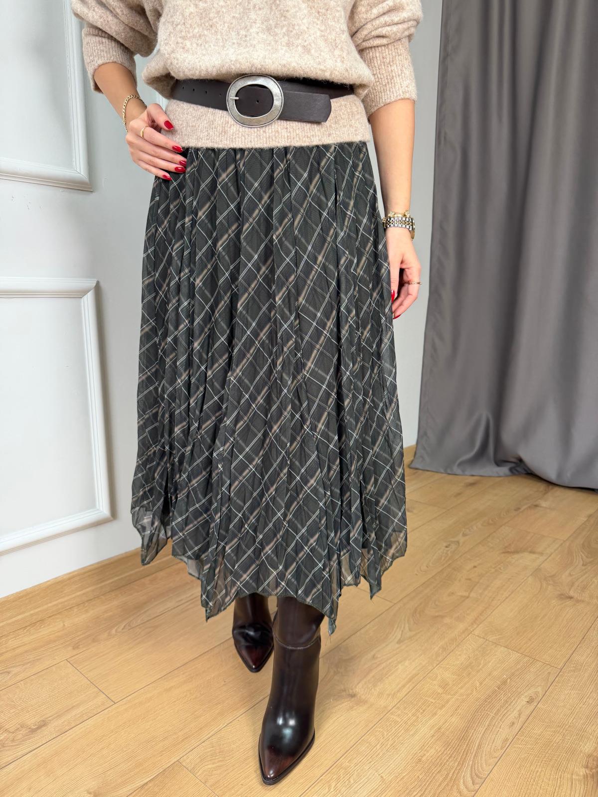 Haki Asimetrik Şifon Etek (SZ0716727)