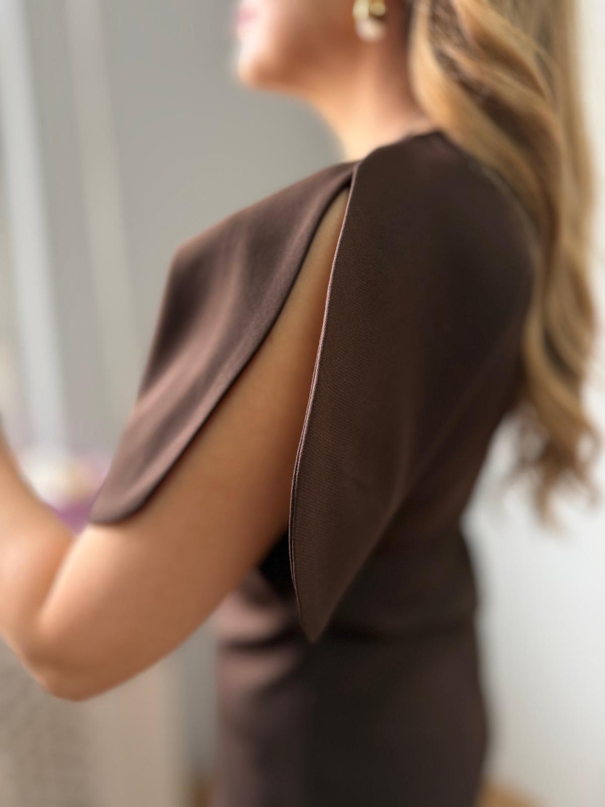 Kahve  Balon Kol Asimetrik Bluz