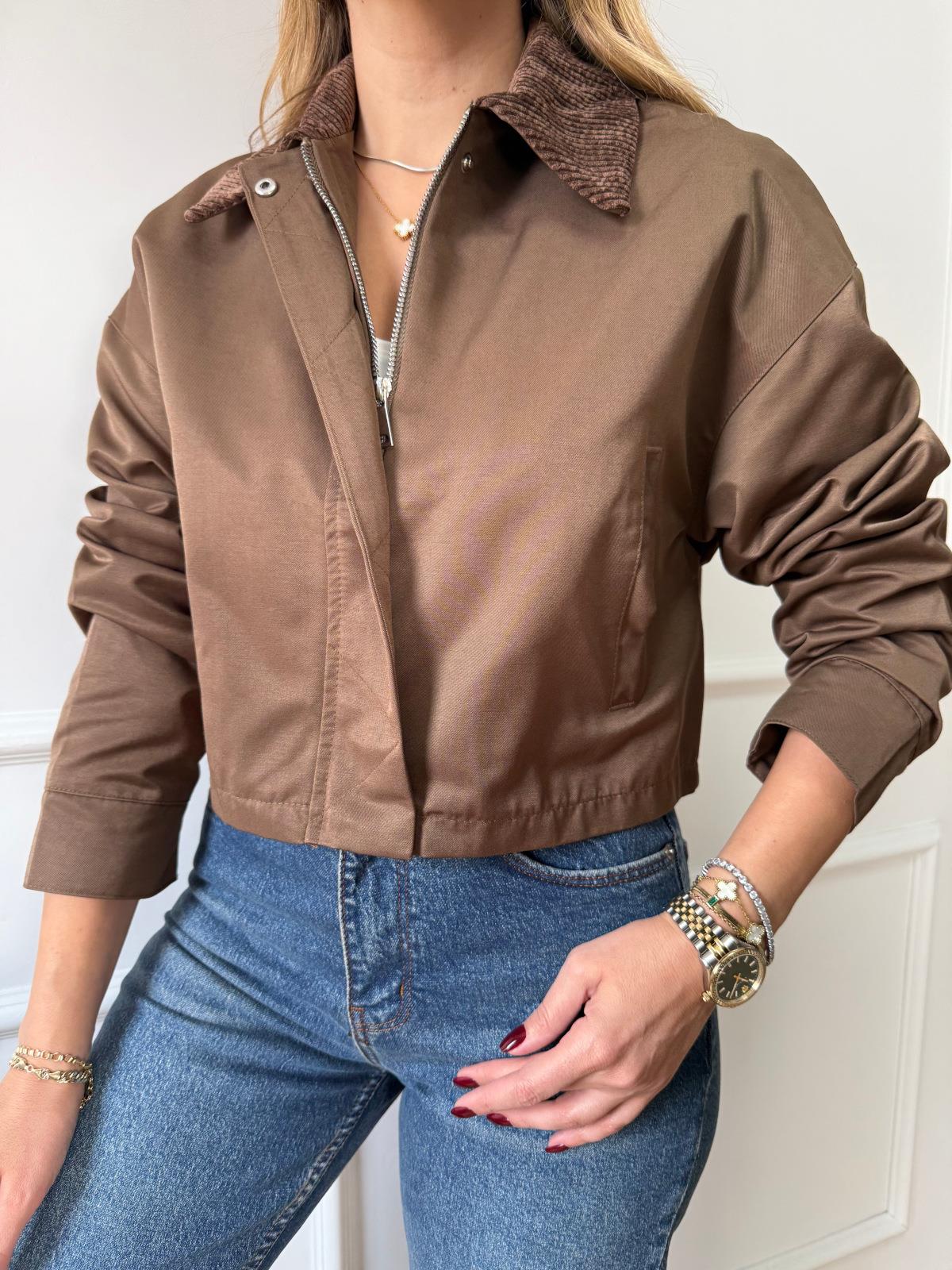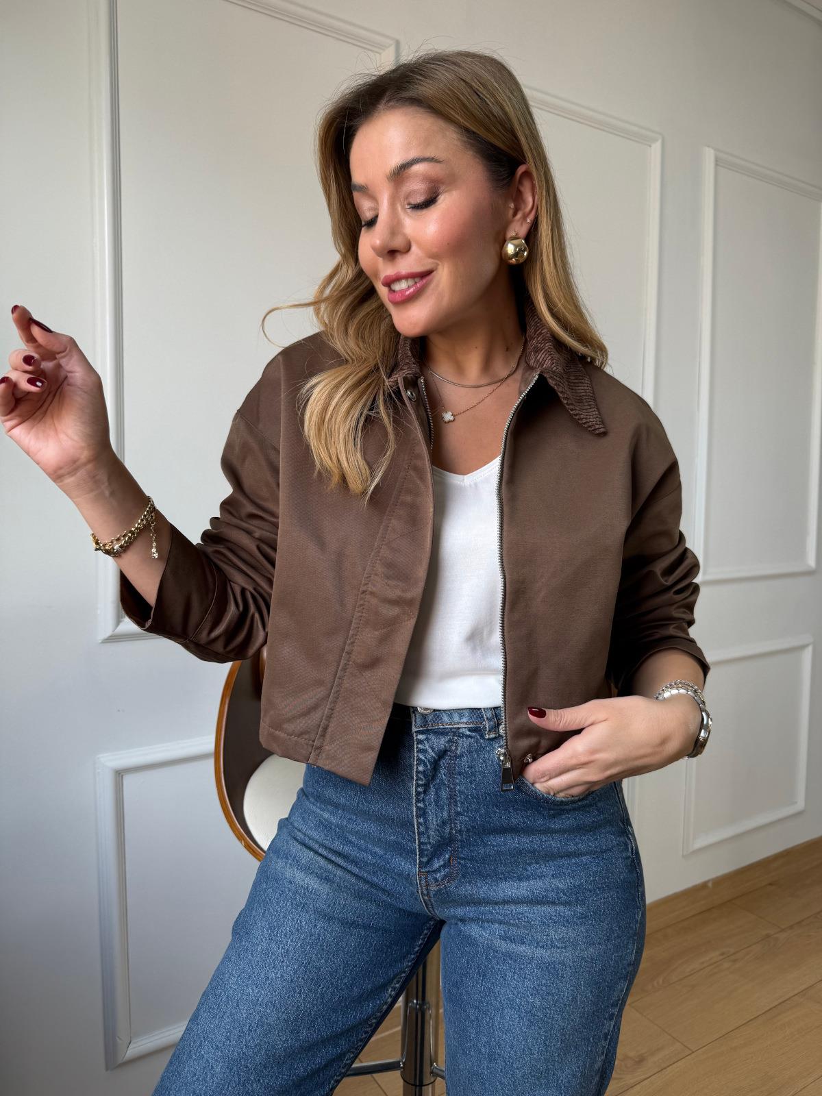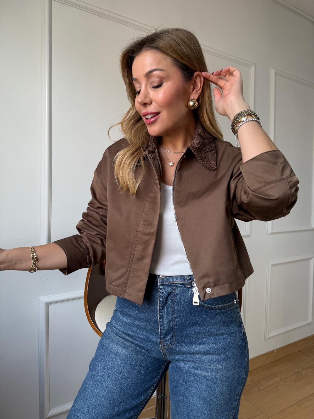 Kahve Kadife Yaka Kısa Ceket