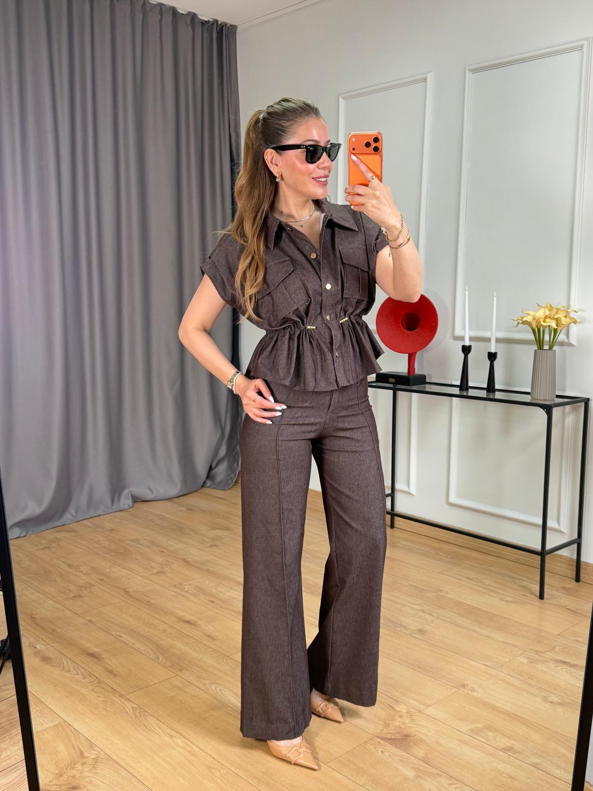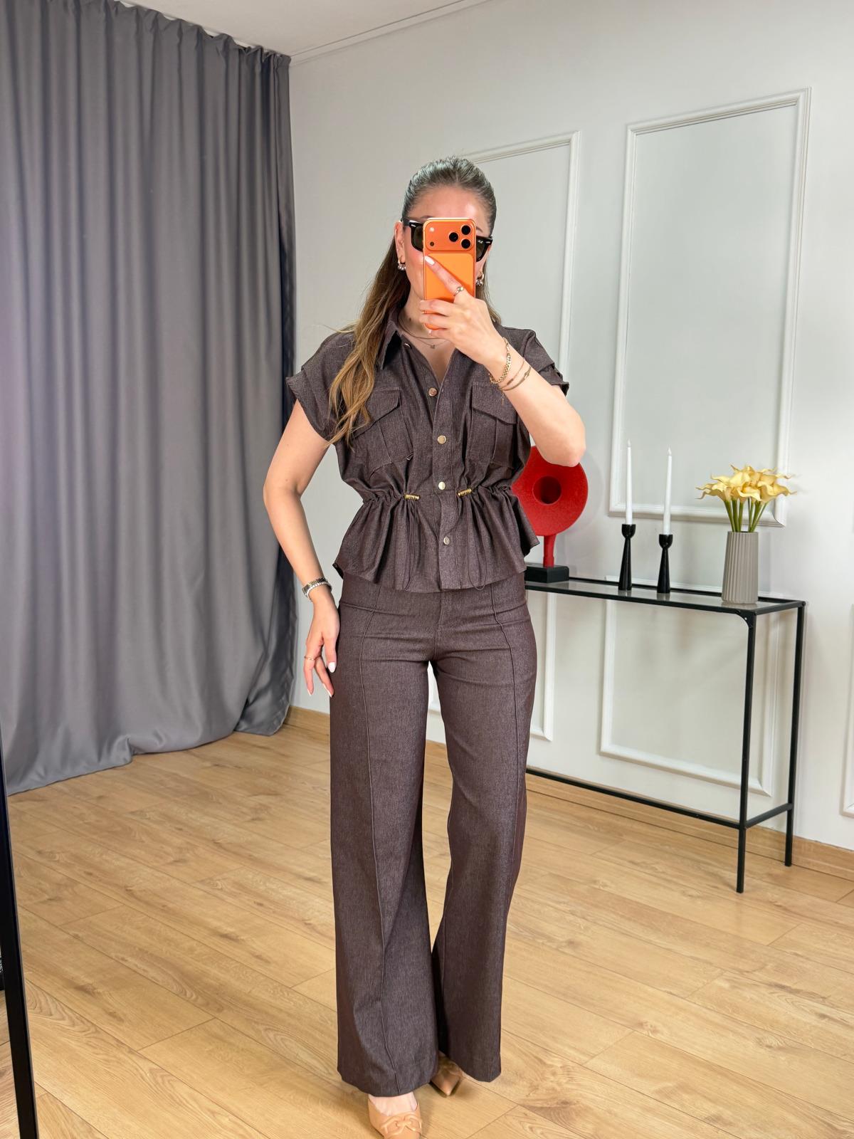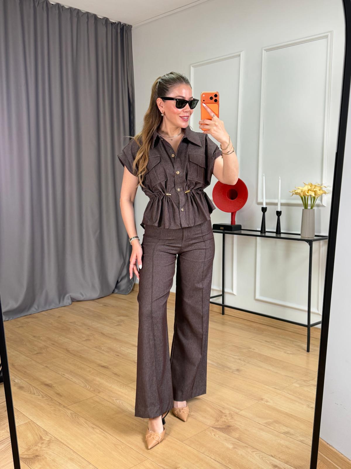 Kahve Bel Lastik Detaylı Yelek Lacivert Bel Lastik Detaylı Yelek Lacivert Ön Dikişli Pantolon