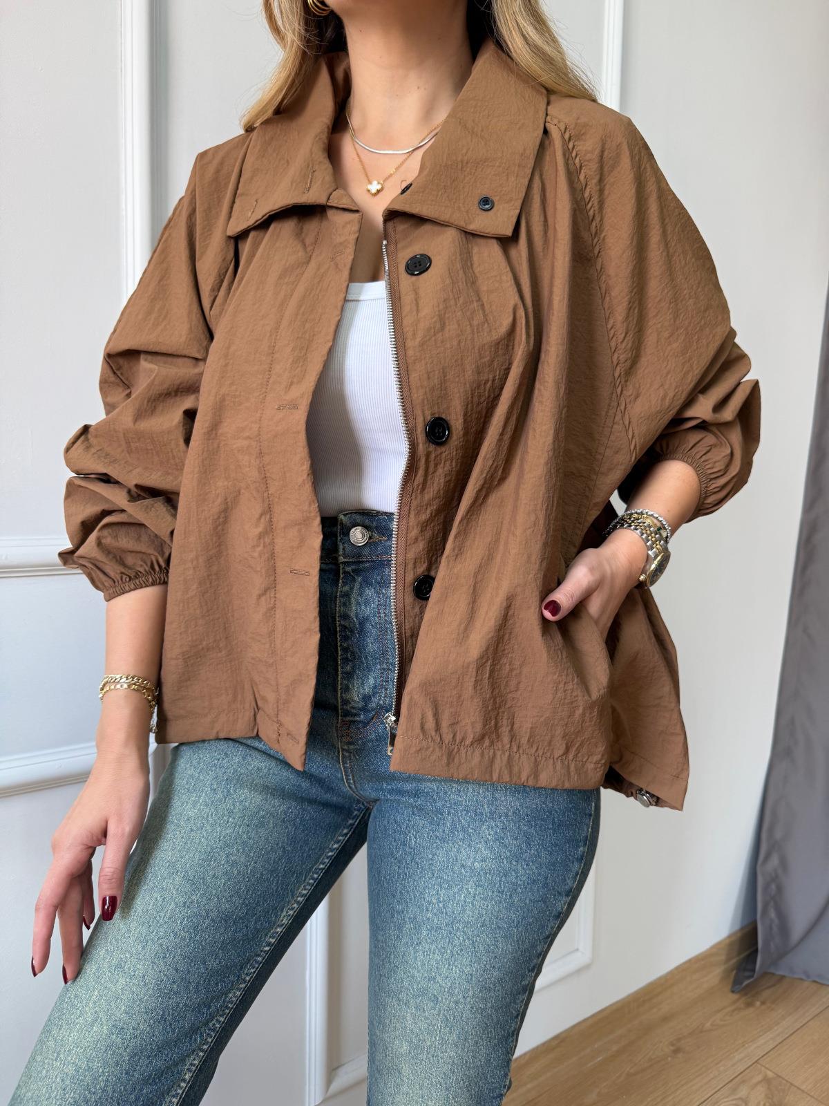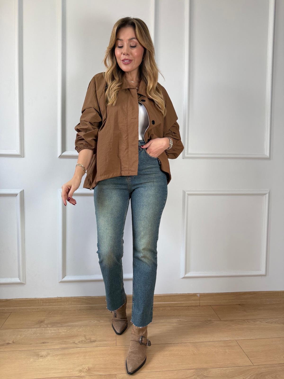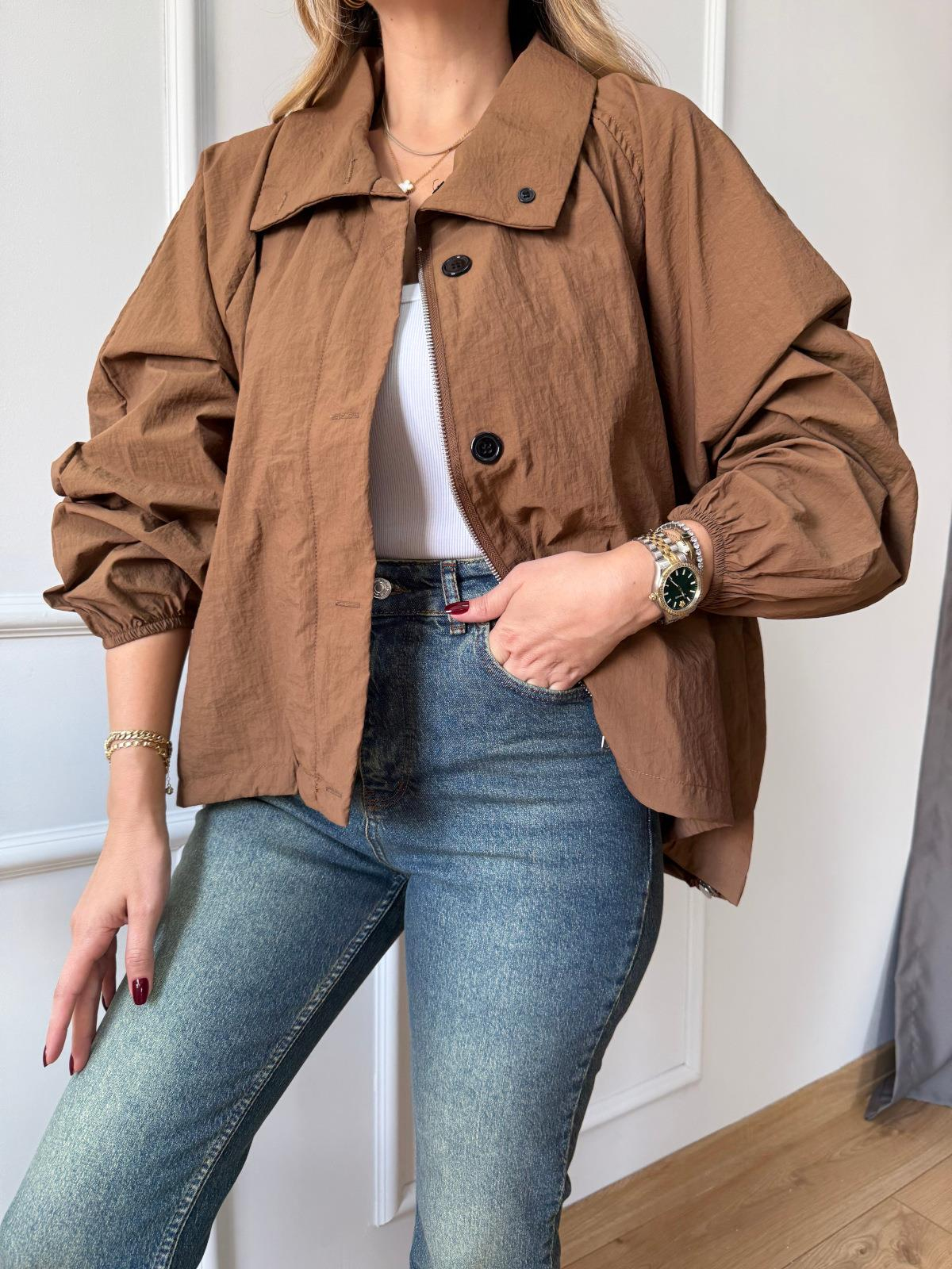 Kahve Siyah Düğmeli Paraşüt Ceket