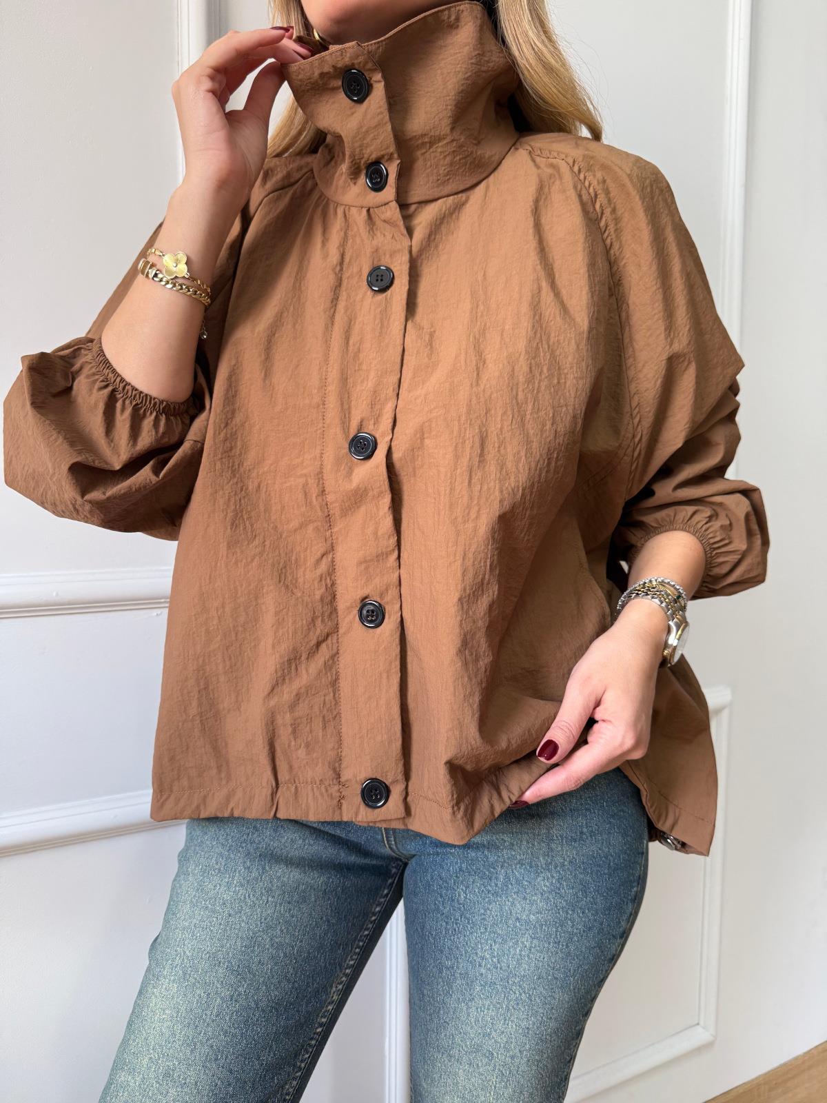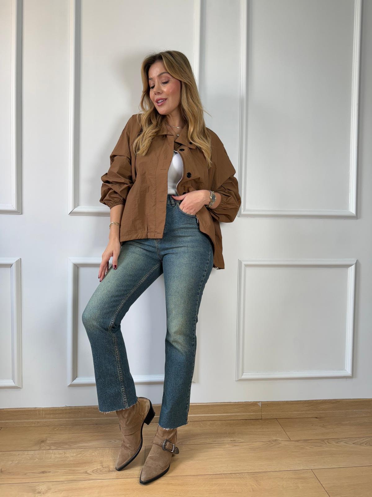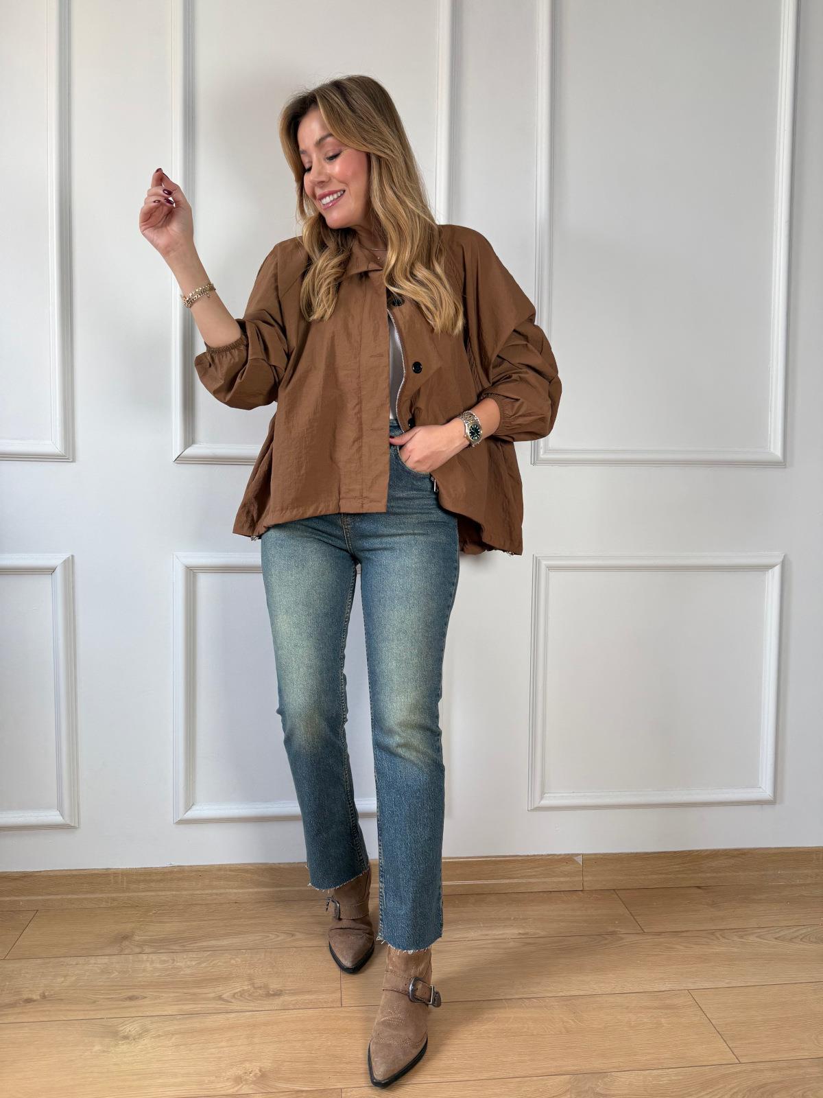 Kahve Siyah Düğmeli Paraşüt Ceket