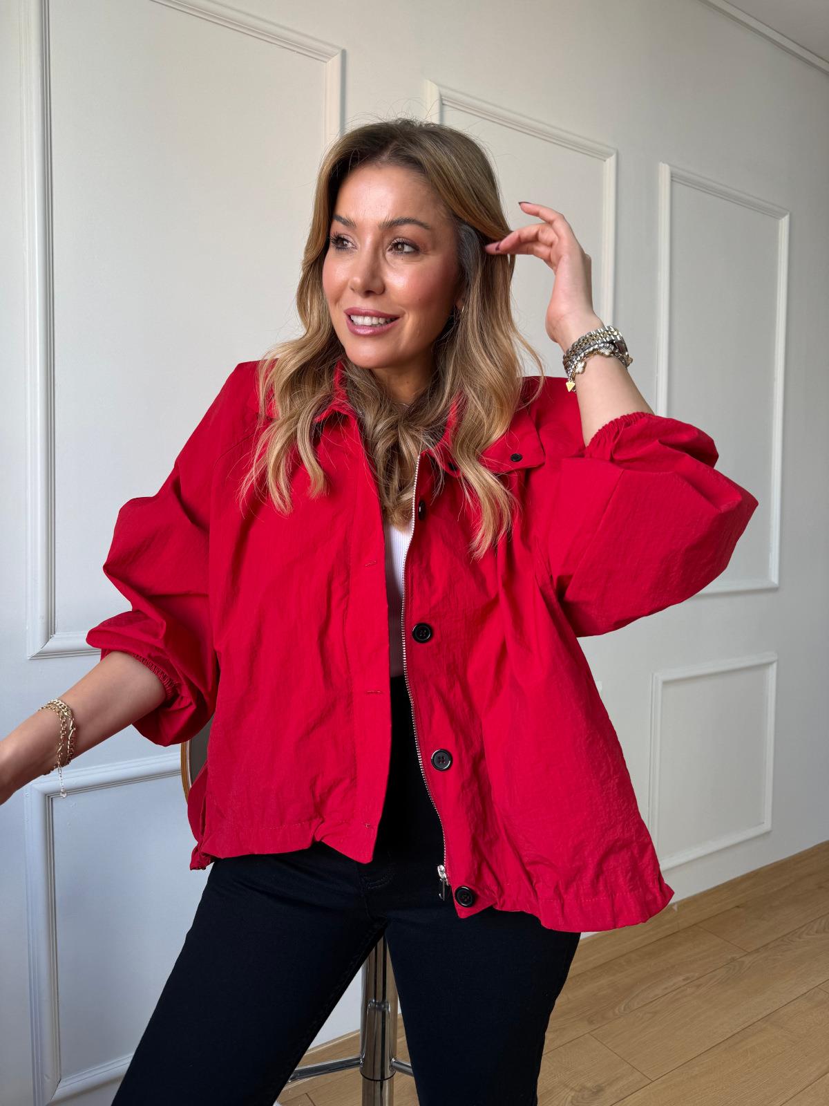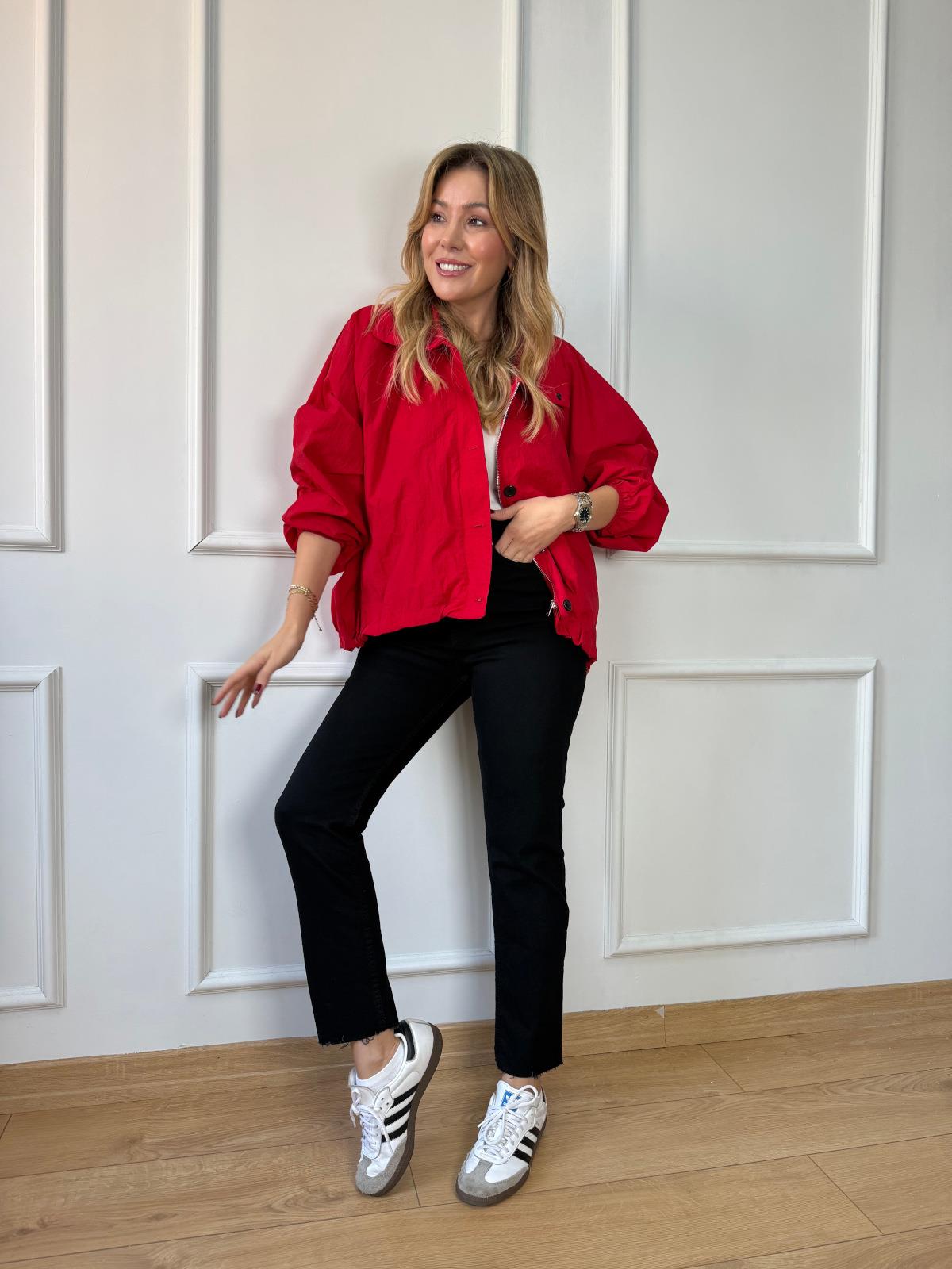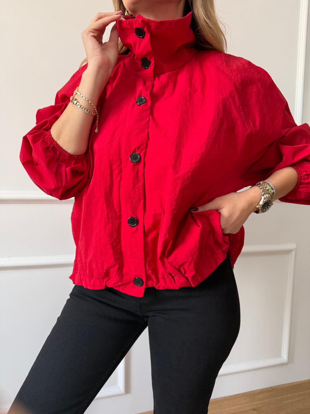 Kırmızı Siyah Düğmeli Paraşüt Ceket
