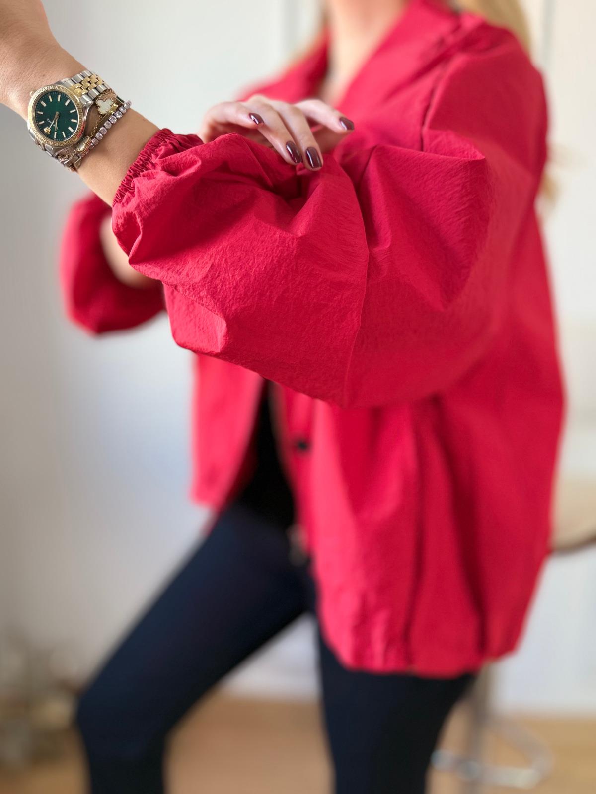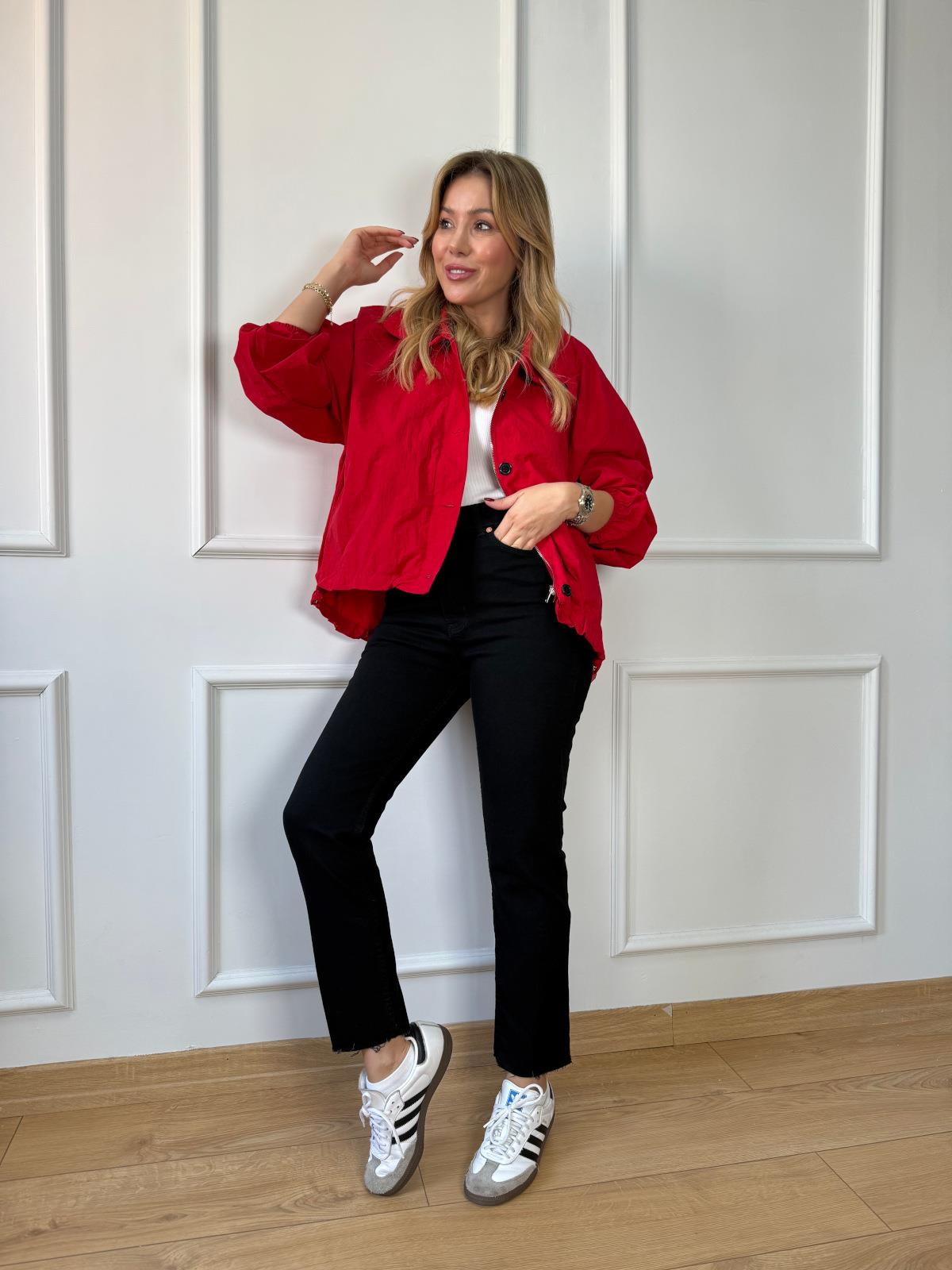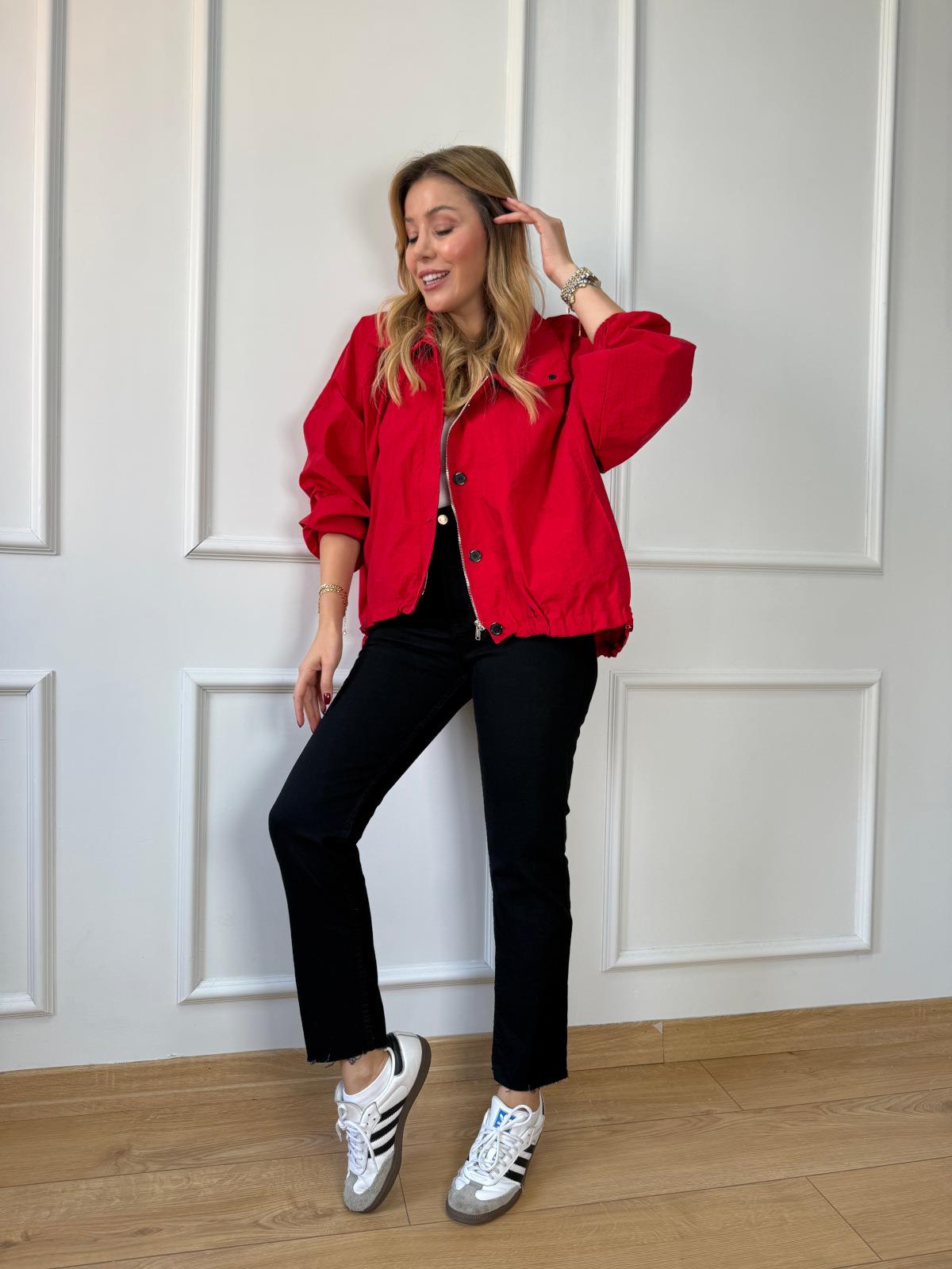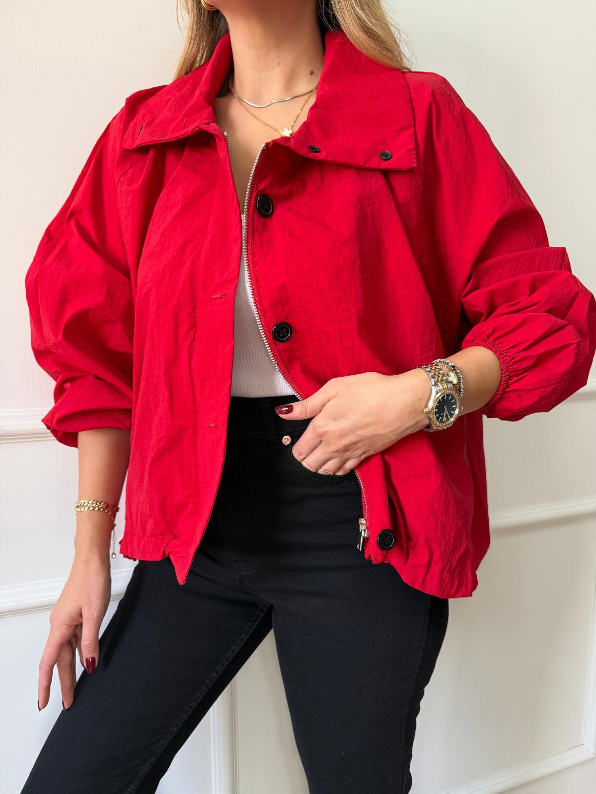 Kırmızı Siyah Düğmeli Paraşüt Ceket