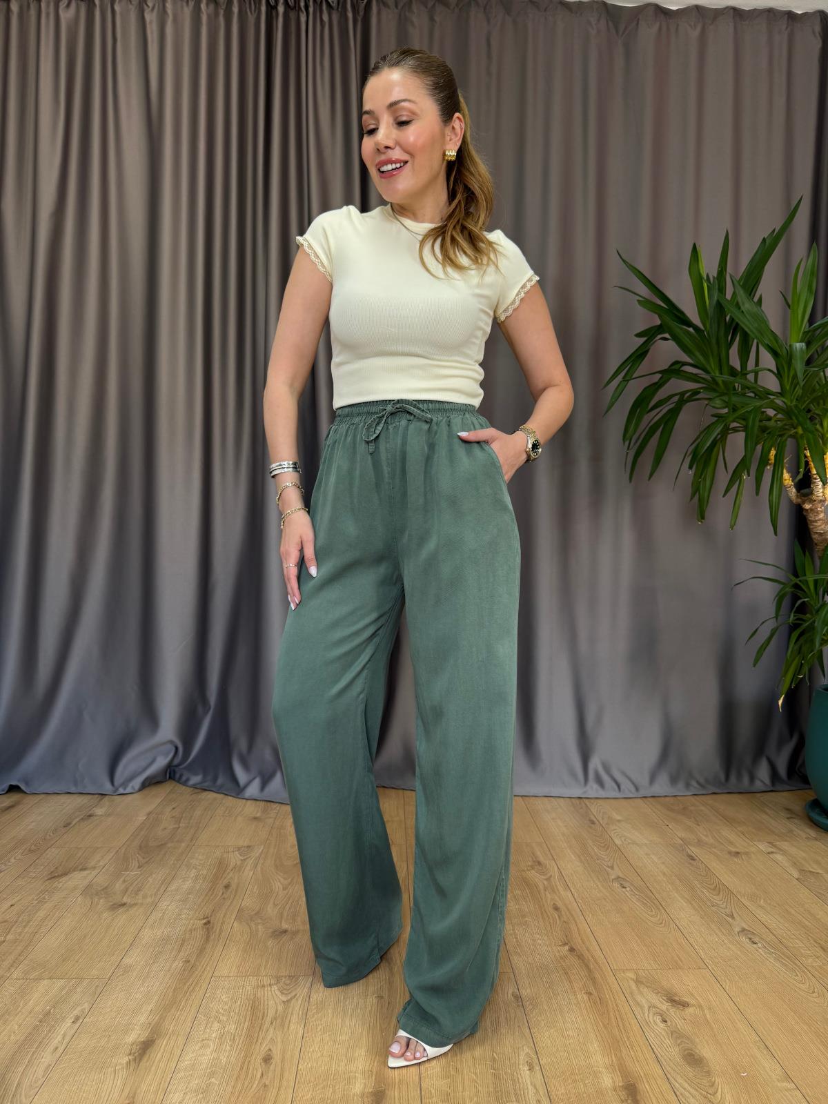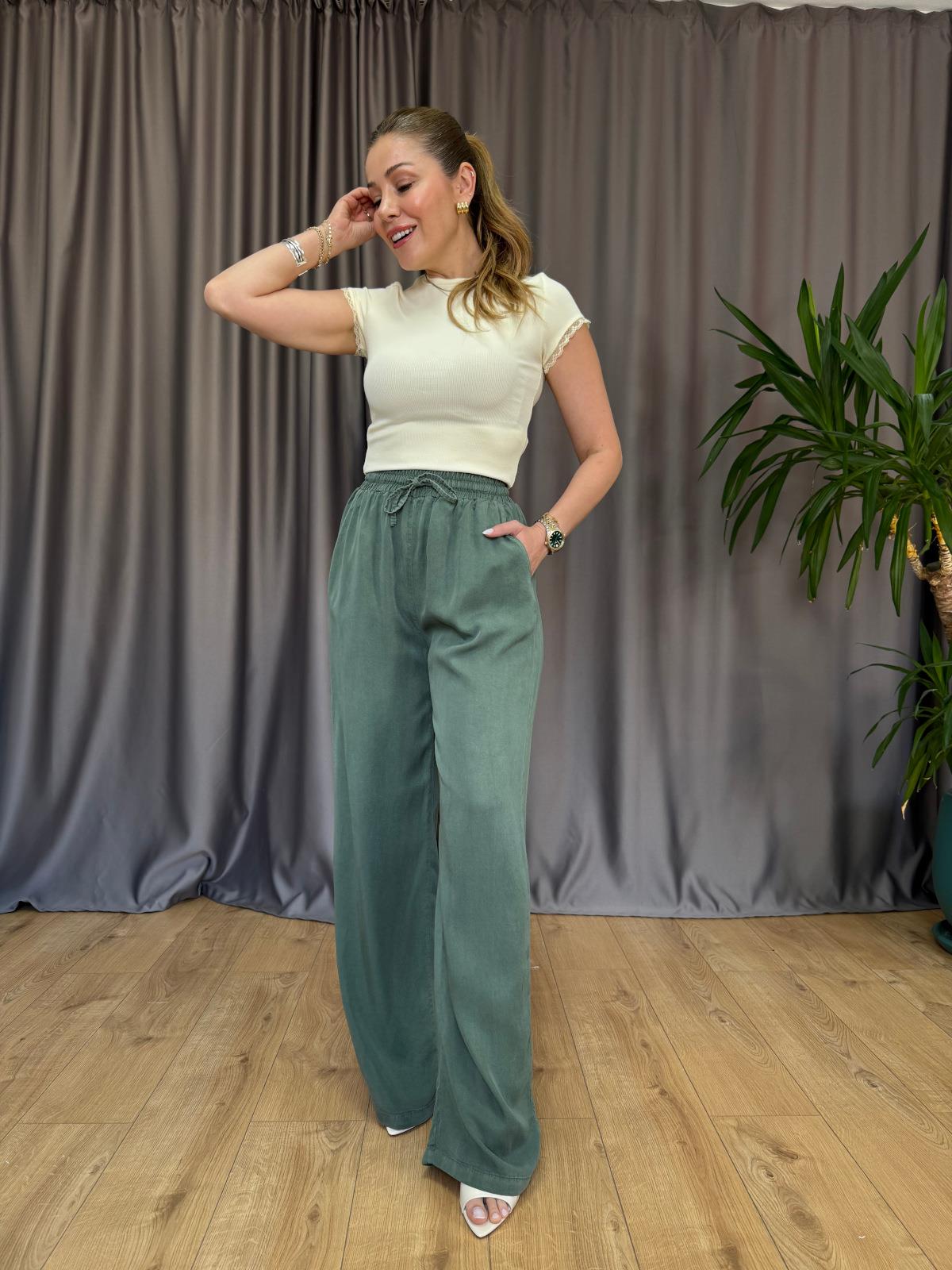 Krem Kol Dantel Detaylı Fitilli Tshirt