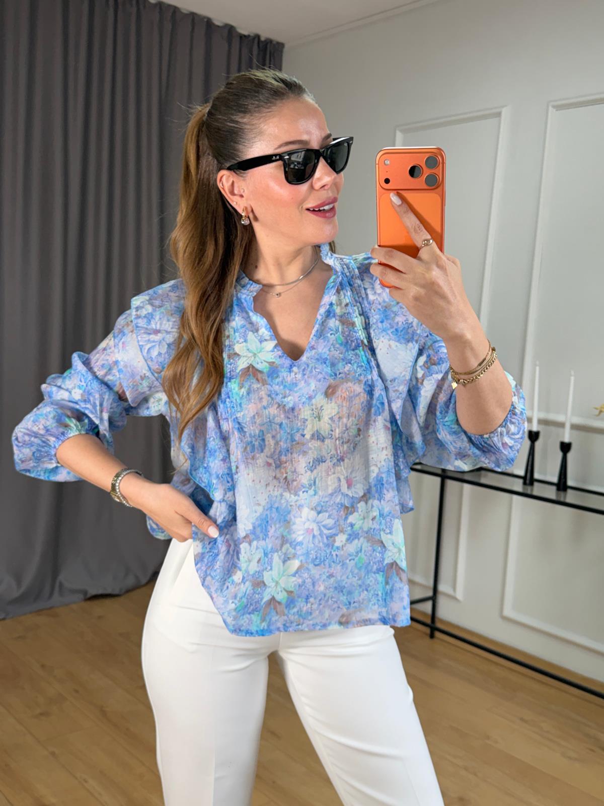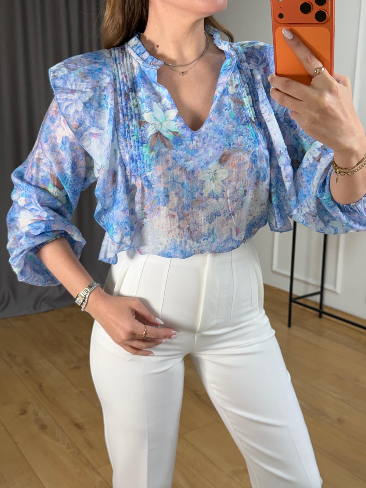 Mavi Çiçek Desenli Bluz (SZ07609)