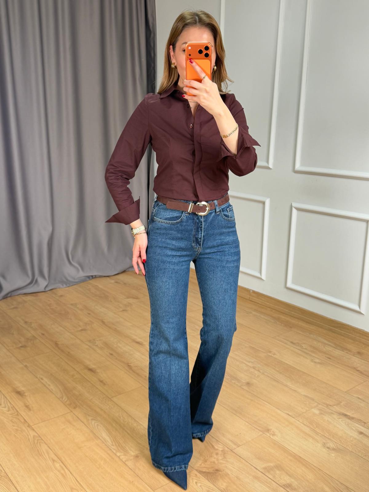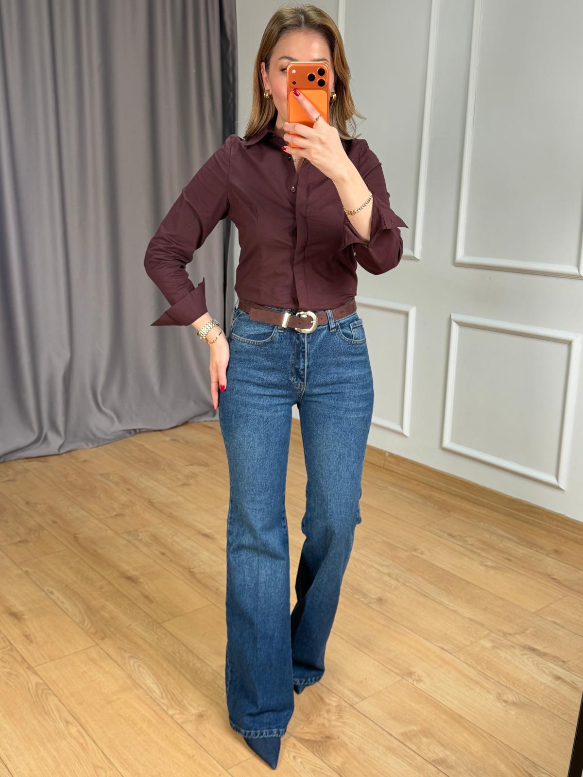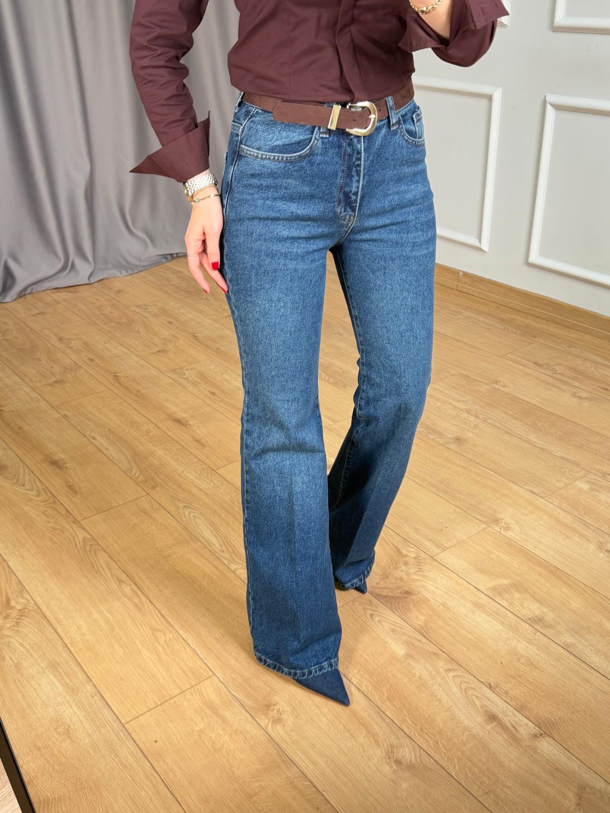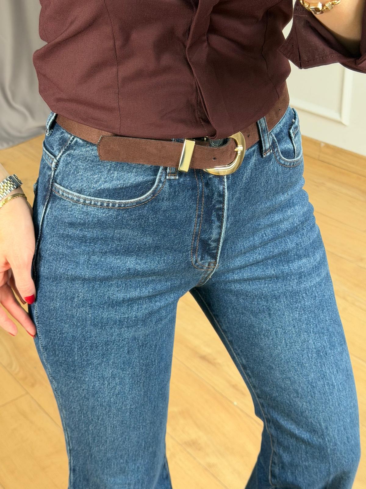 Mavi Ütülü Kemerli Jean