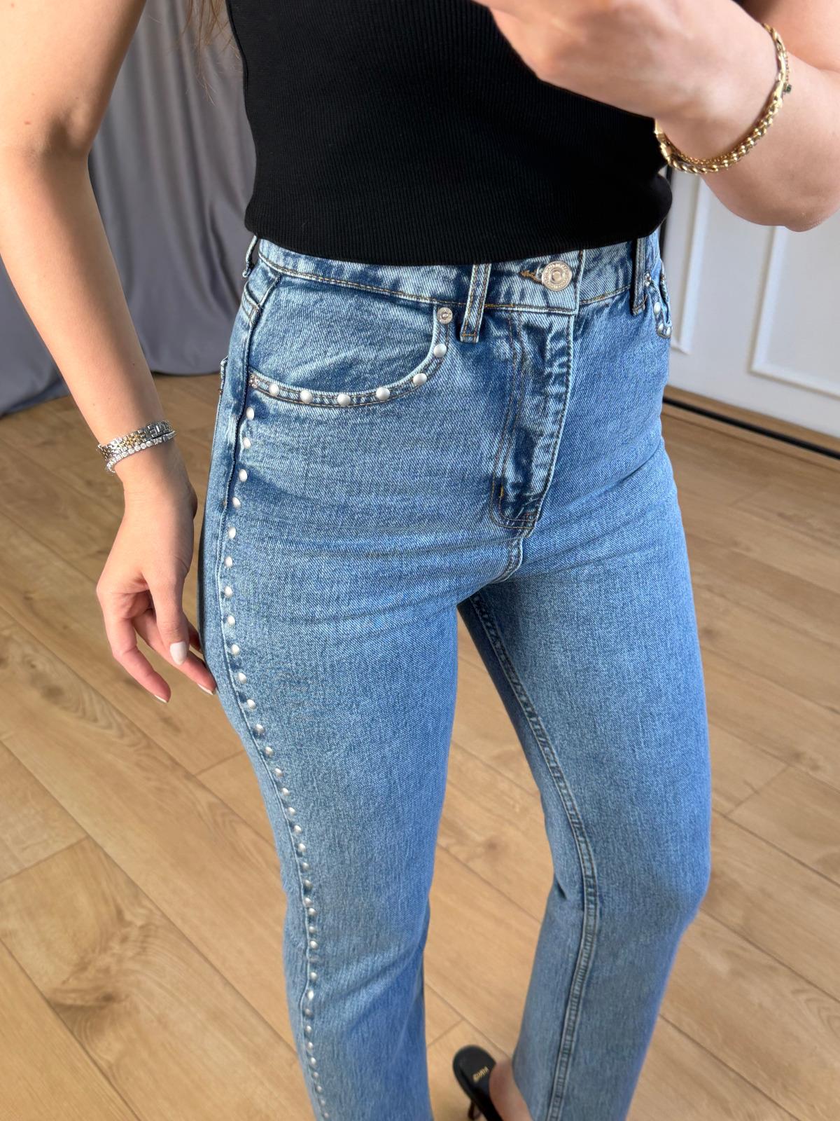 Siyah Dik Yaka Kolsuz Bluz Buz Mavisi Zımbalı Jean