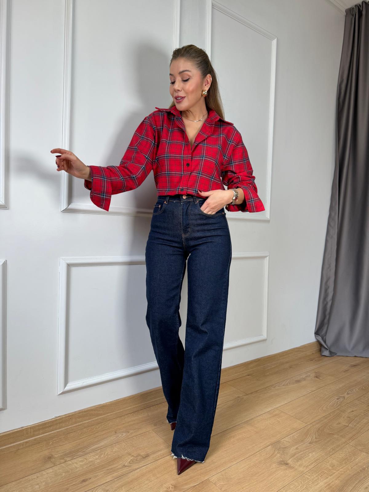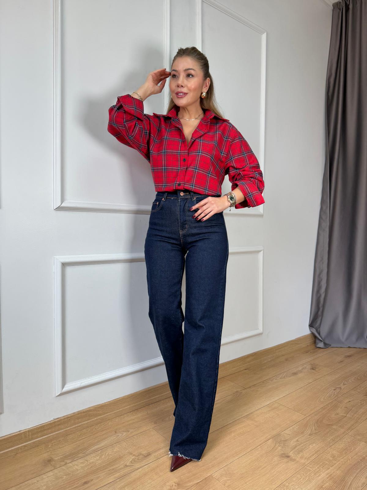 Yeşil Yeni Ekose Gömlek Kırmızı Yeni Ekose Gömlek İndigo Yeni Ekose Gömlek Orj. Marka Koyu Lacivert Wide Leg