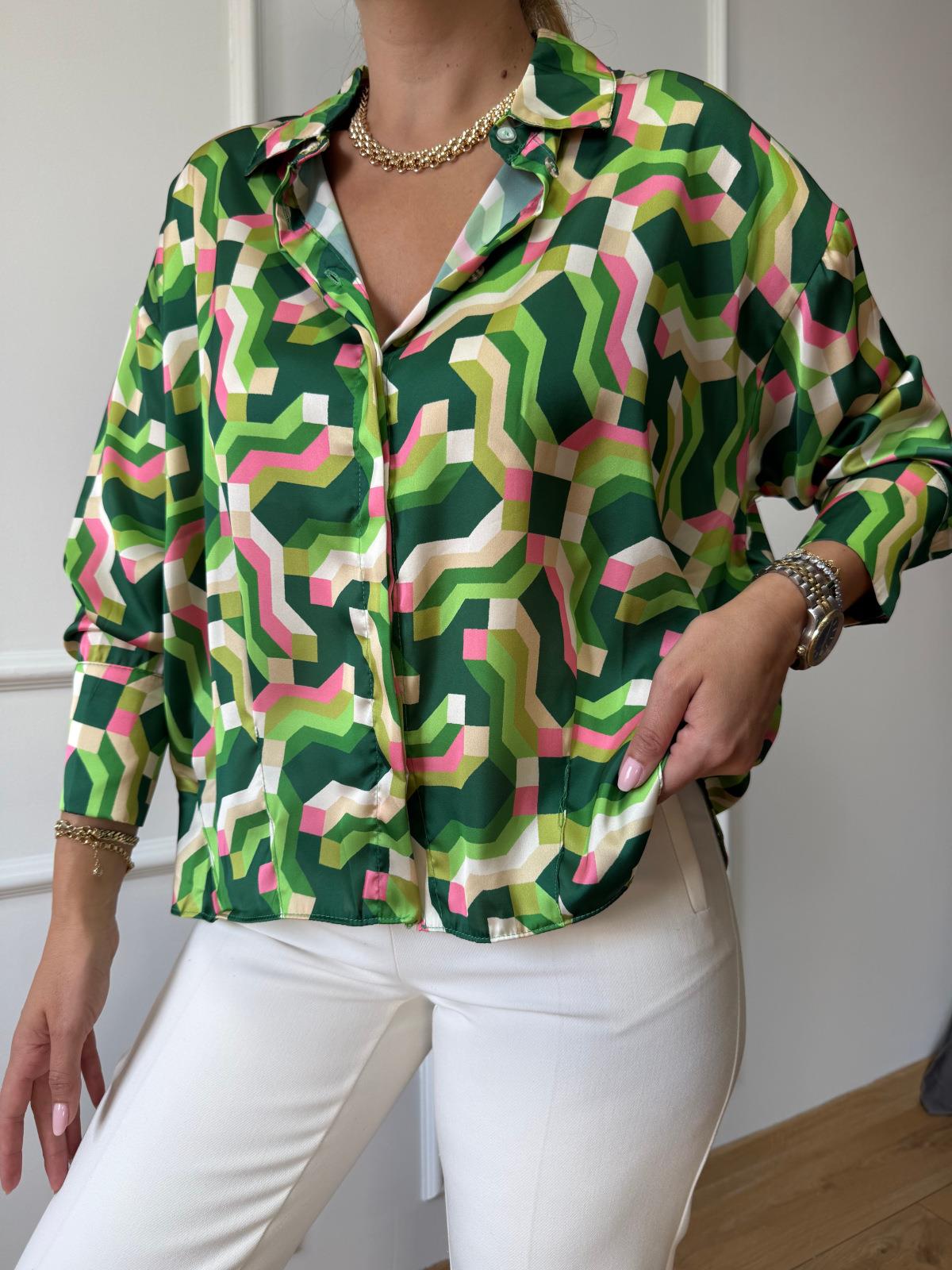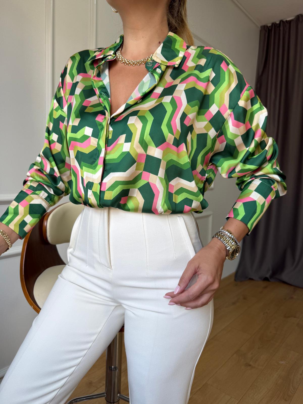 Renkli Geometrik Desenli Saten Gömlek