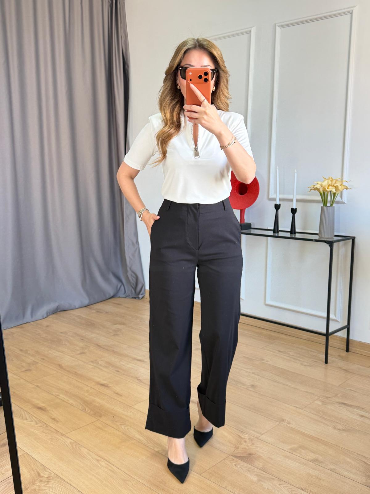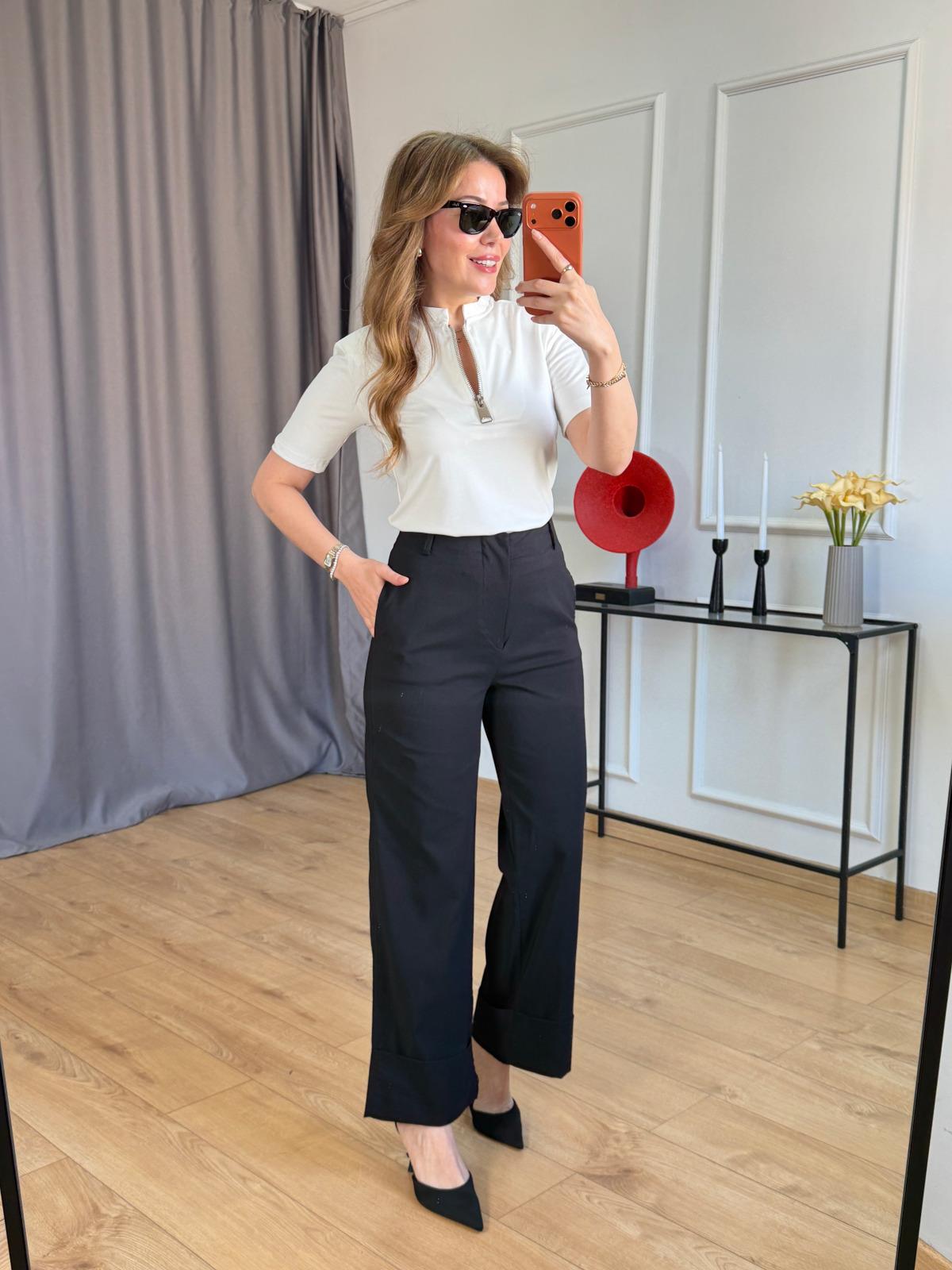 Taş Duble Paça Pantolon Lacivert Duble Paça Pantolon Bordo Duble Paça Pantolon Ekru Yaka Fermuarlı Vatkalı Tshirt