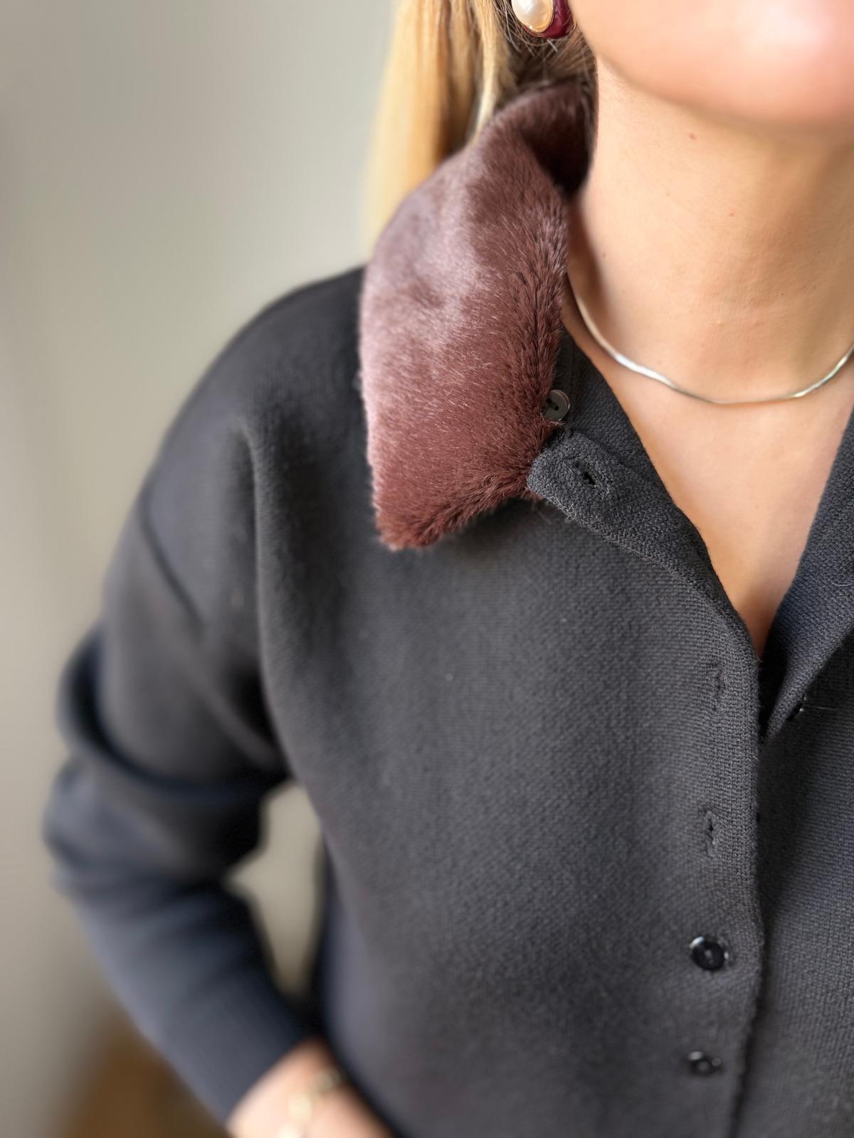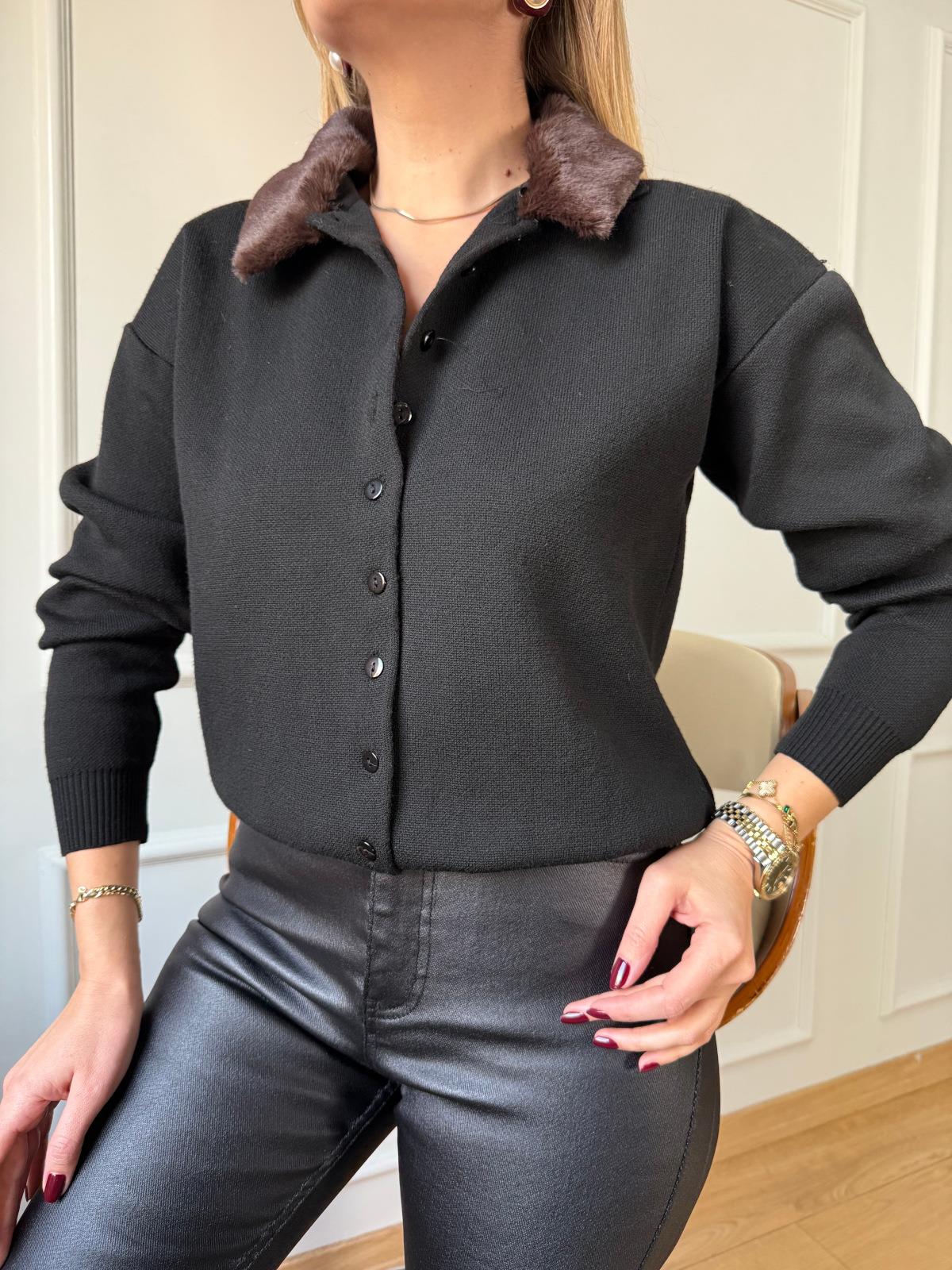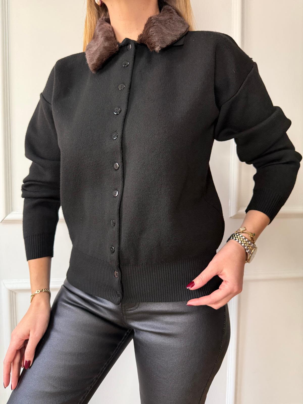 Siyah Kürk Yakalı Hırka (SZ0716447)