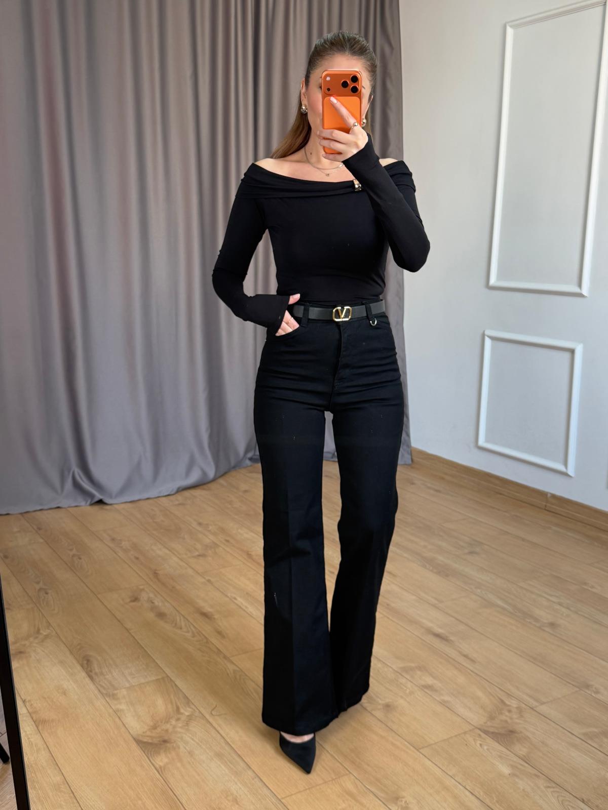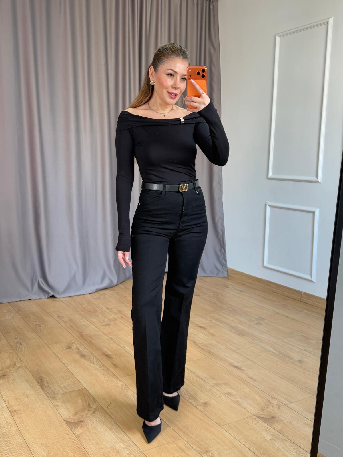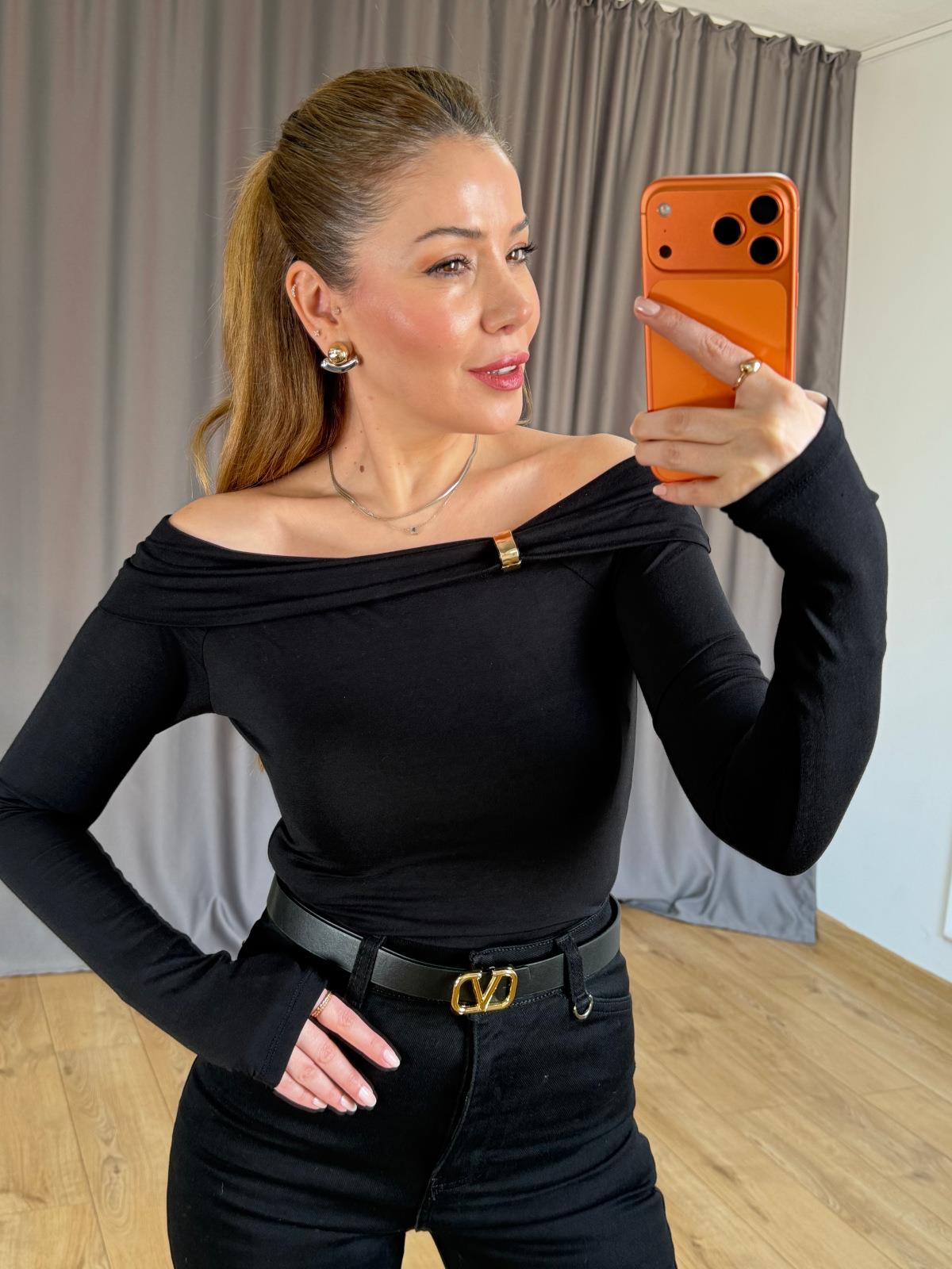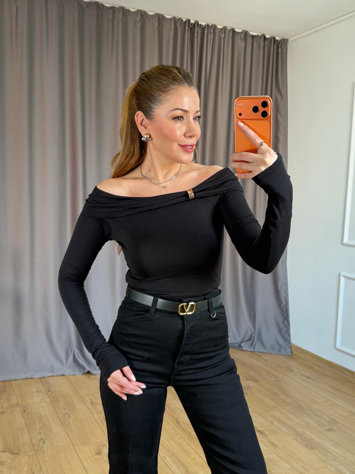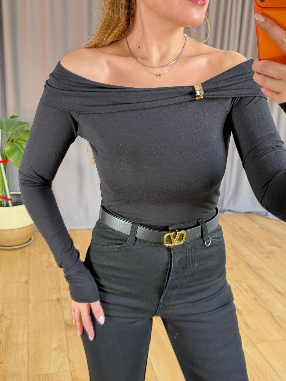 Siyah Omuz Aksesuarlı Bluz