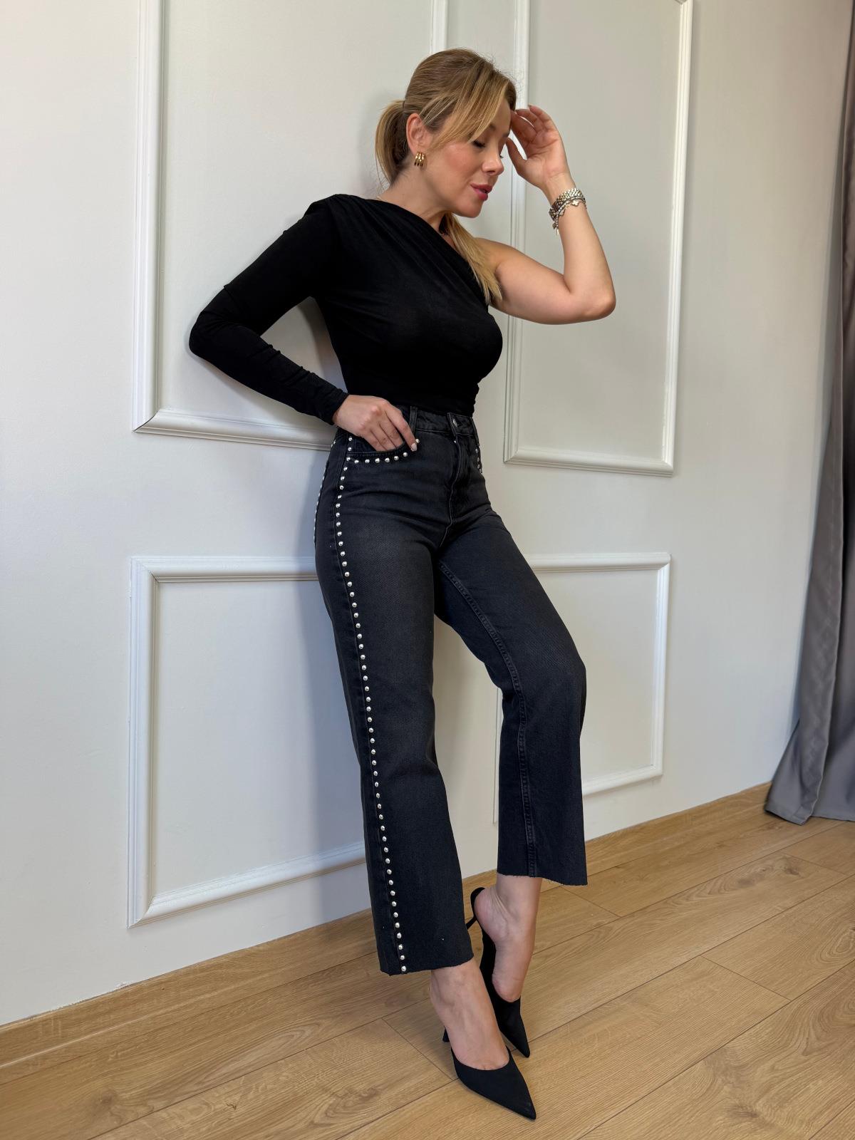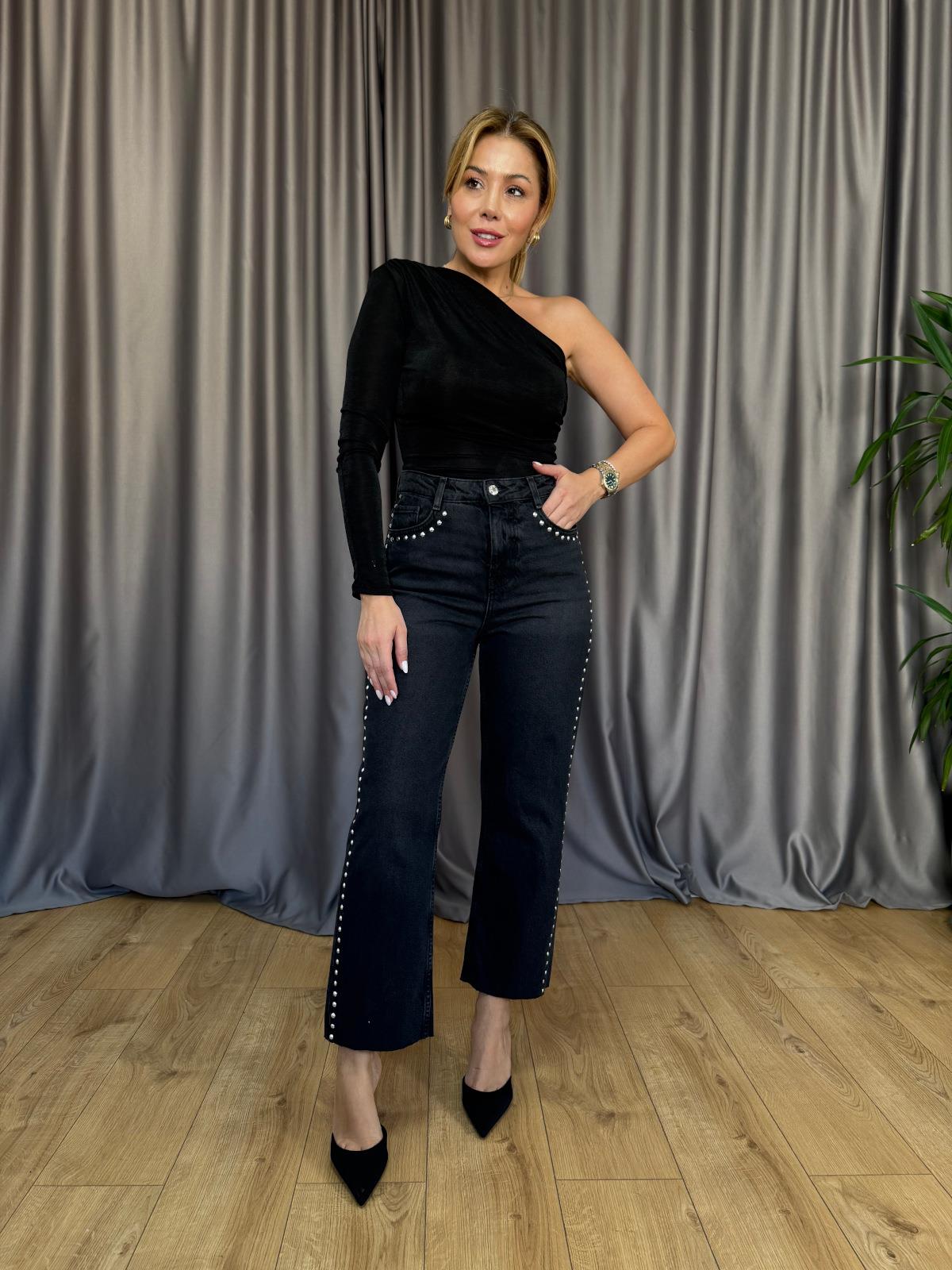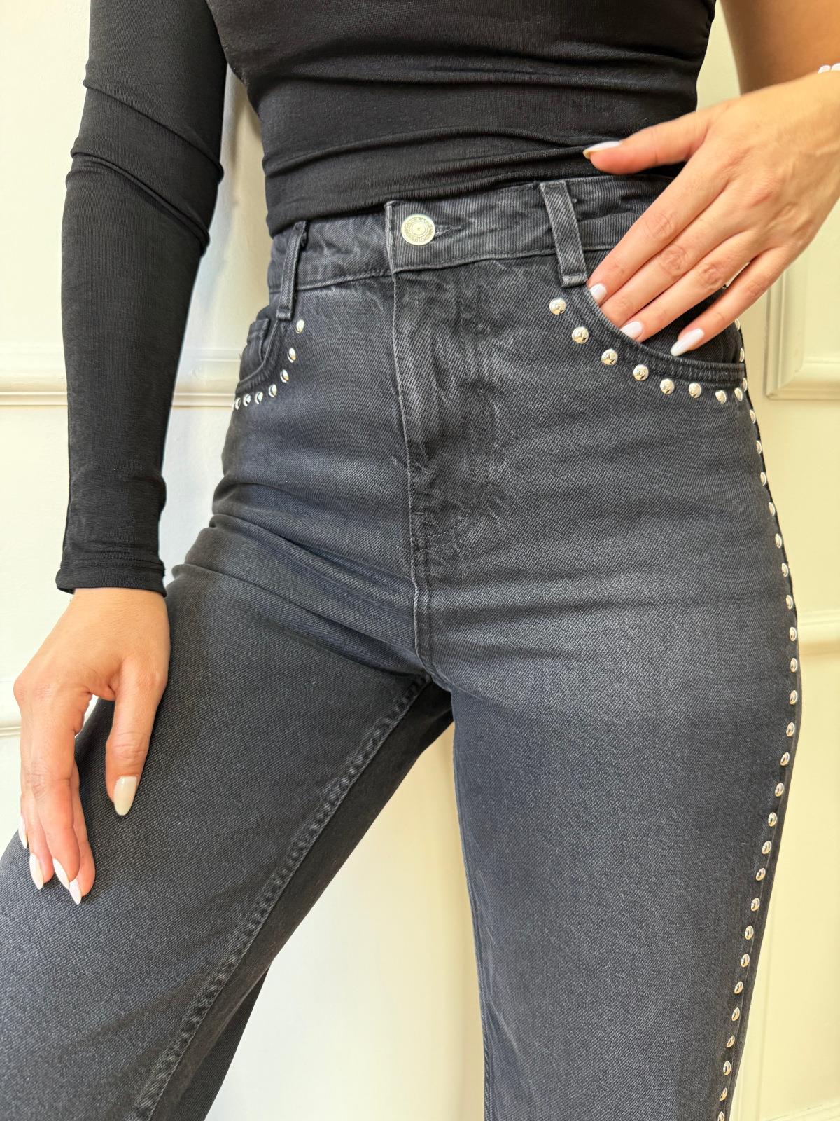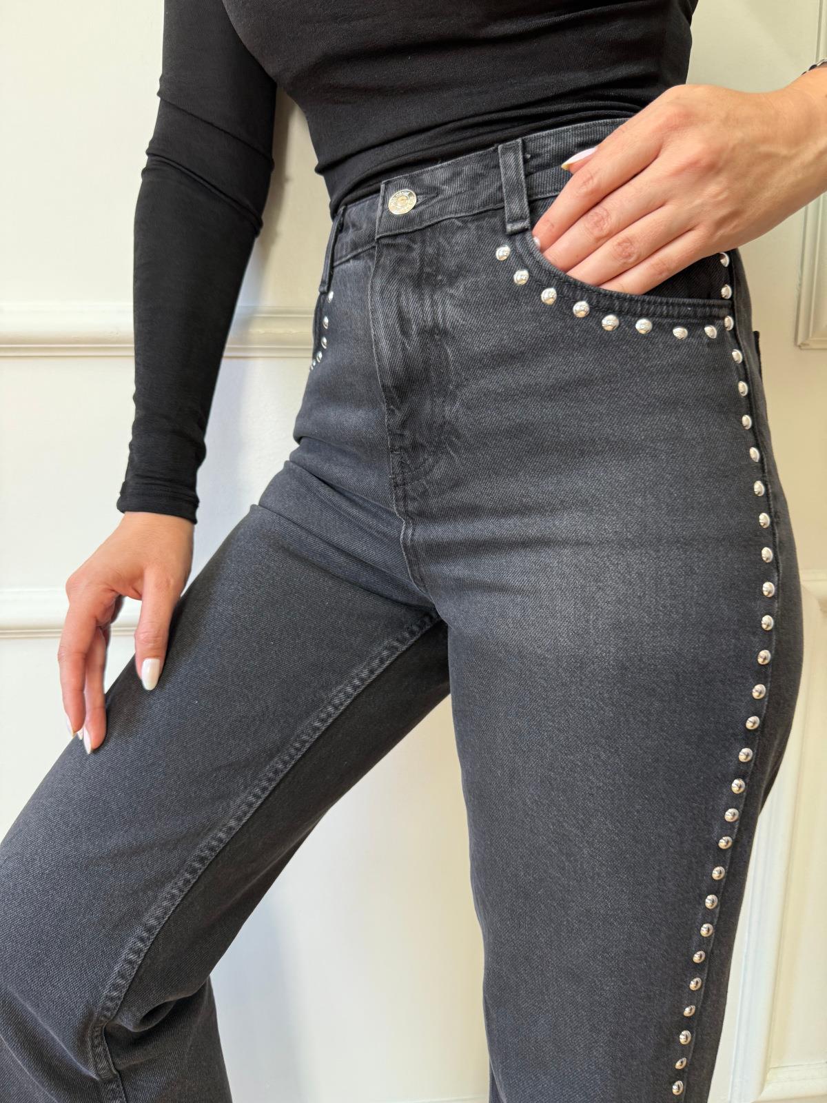 Siyah Zımbalı Jean